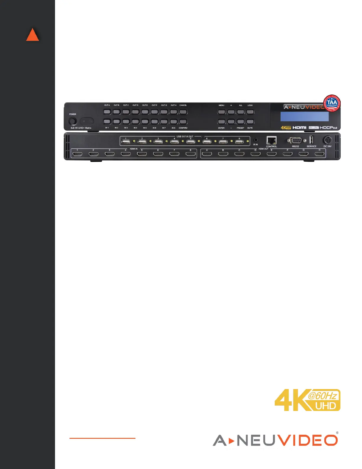 connect up to (8) 6G HDMI sources and up to (8) 6G HDMI displays