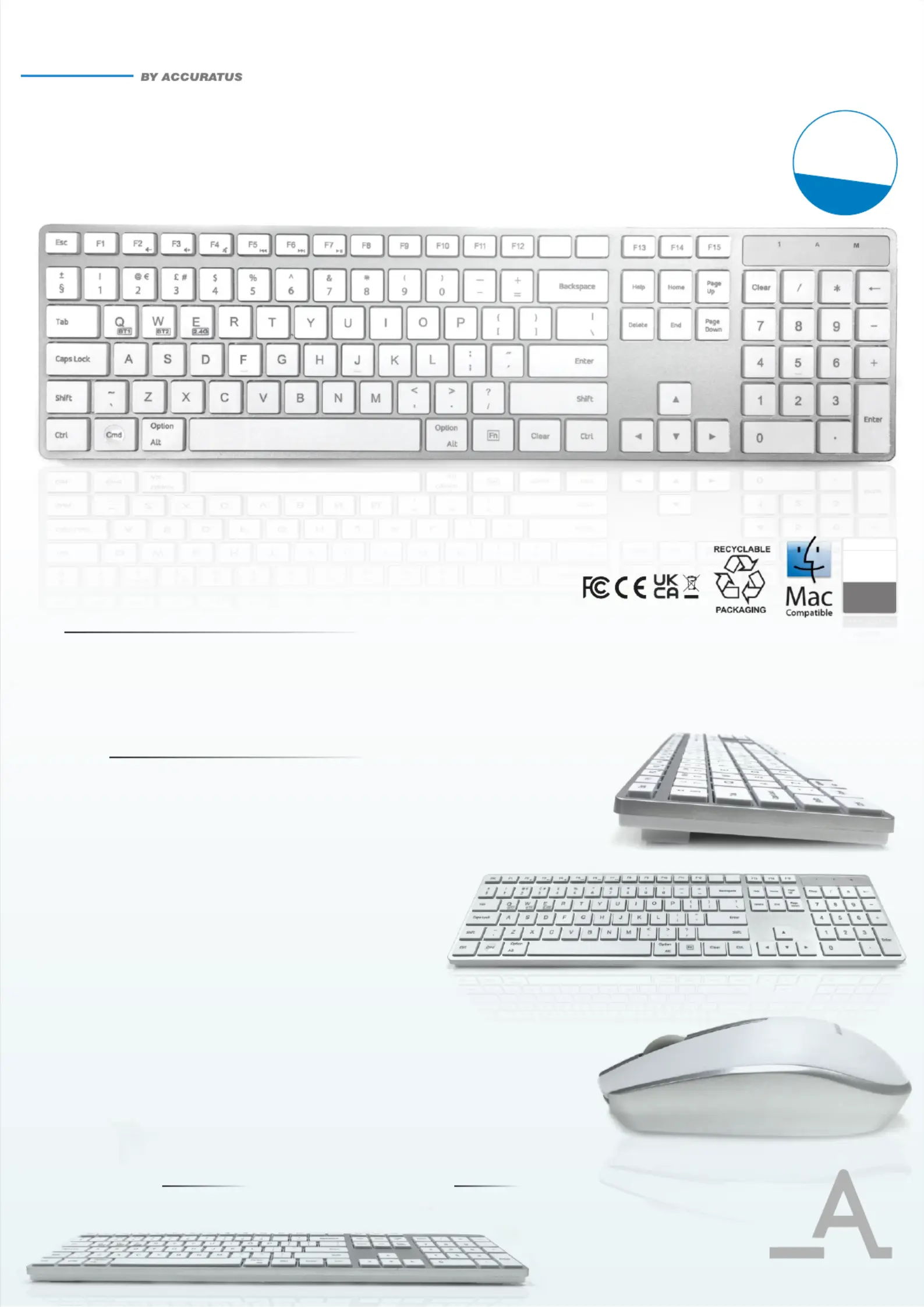 The Accuratus 301 MAC Wireless keyboard is a multi-device Apple Mac layout keyboard allowing you to connect via Bluetooth or RF using the supplied nano sized RF USB Type-A receiver. It is