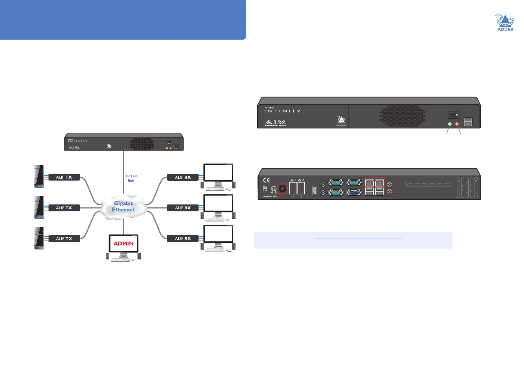 Note: Although the AdderLink Innity units require Gigabit Ethernet connections, in its