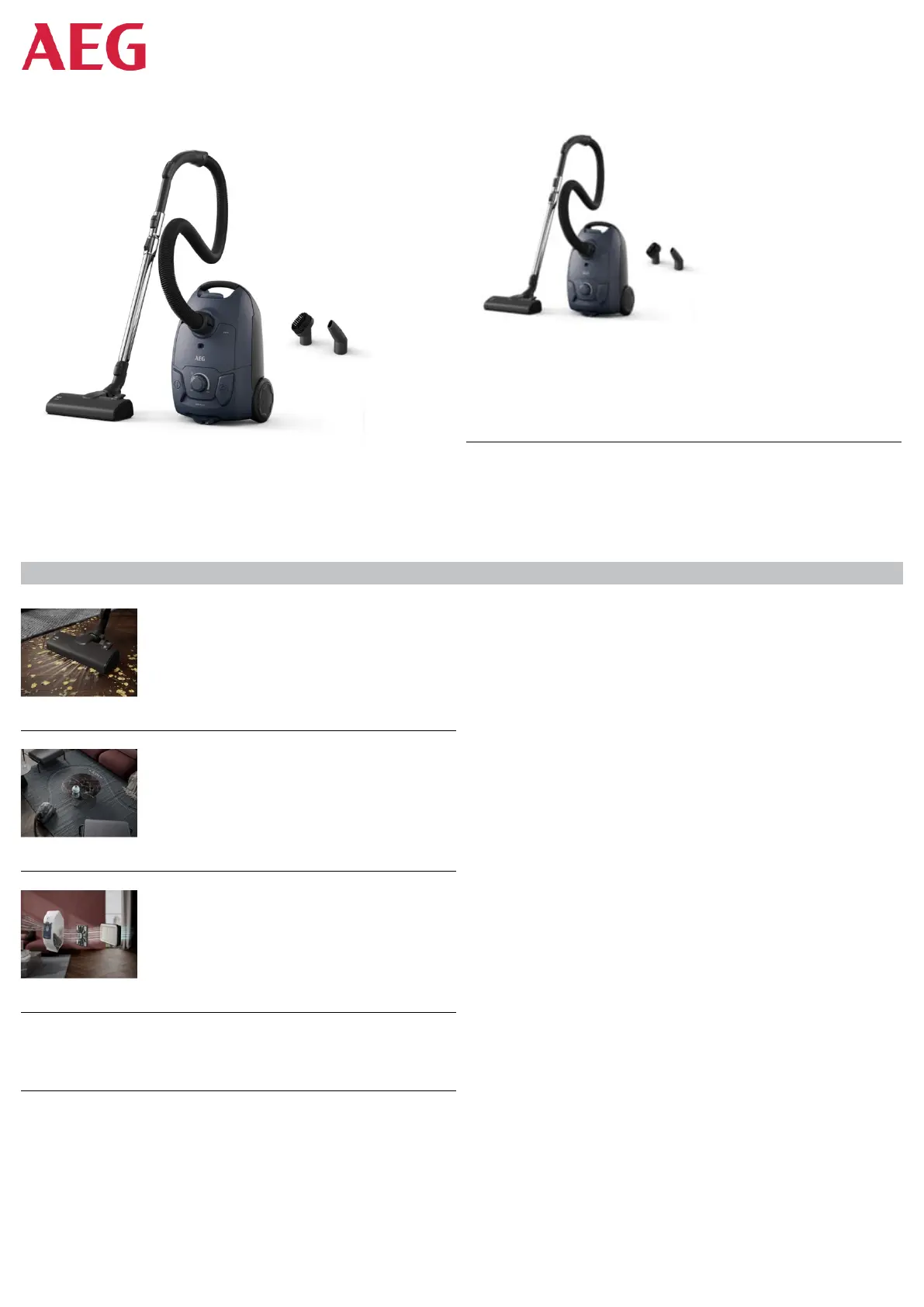Olvassa el alább 📖 a magyar nyelvű használati útmutatót AEG Clean 5000 AB51C1DB (2 oldal) a porszívó kategóriában. Ezt az útmutatót 10 ember találta hasznosnak és 5.5 felhasználó értékelte átlagosan 3.5 csillagra