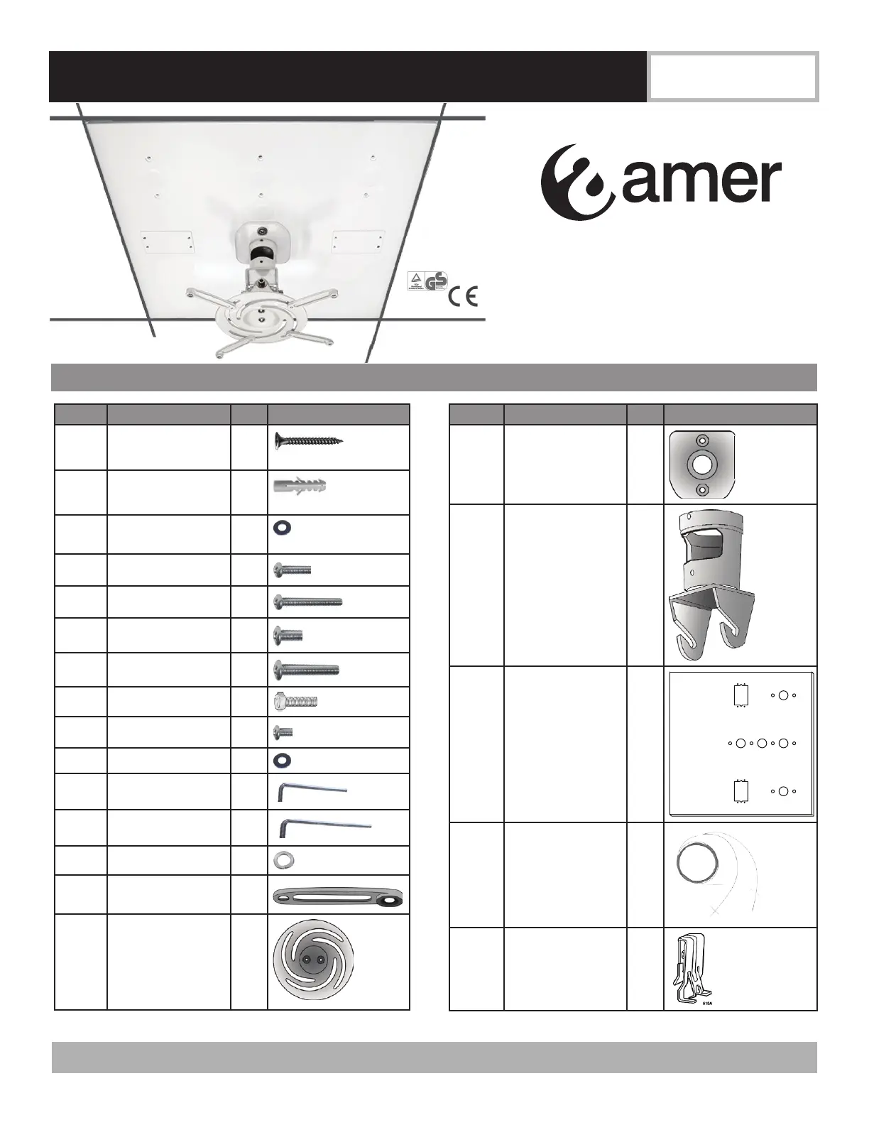 Olvassa el alább 📖 a magyar nyelvű használati útmutatót Amer AMRDCP100KIT (2 oldal) a Lapos panel támogatás kategóriában. Ezt az útmutatót 16 ember találta hasznosnak és 8.5 felhasználó értékelte átlagosan 3.7 csillagra
