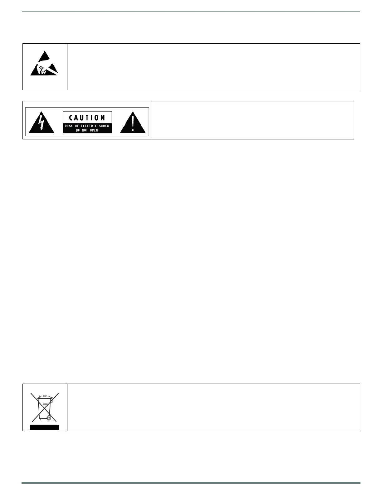 Anyone performing field maintenance on AMX equipment should use an appropriate ESD field service kit complete with at