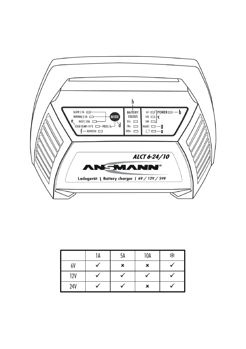 Olvassa el alább 📖 a magyar nyelvű használati útmutatót Ansmann ALCT6-24/10 (66 oldal) a Akkumulátor töltő kategóriában. Ezt az útmutatót 11 ember találta hasznosnak és 6 felhasználó értékelte átlagosan 4.7 csillagra
