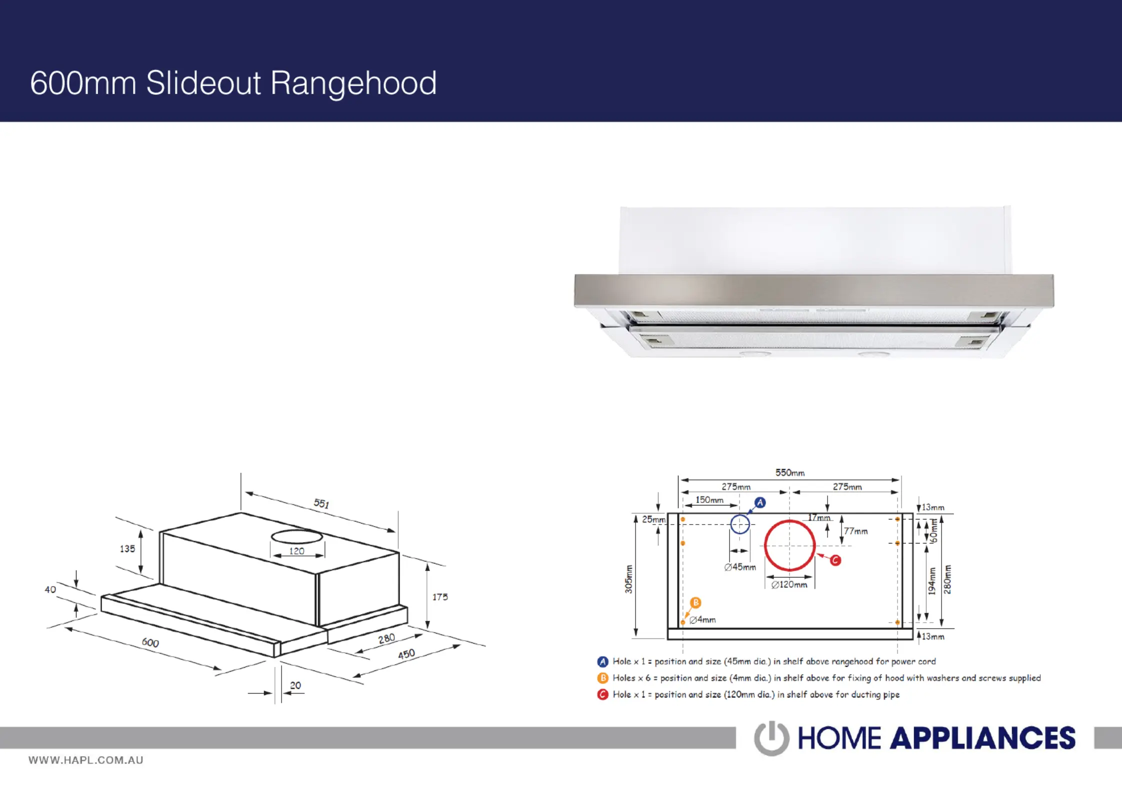 PLEASE NOTE: Dimensions on the Sales Advice Form are a guide only. For complete dimensions and installation requirements refer to the instruction man available at www.hapl.com.au ual