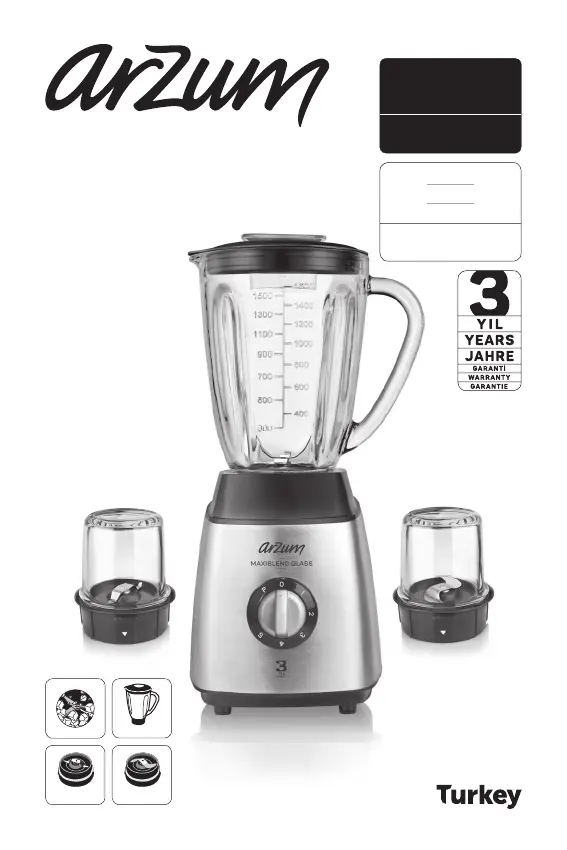 Olvassa el alább 📖 a magyar nyelvű használati útmutatót Arzum Maxiblend Glass AR1056 (52 oldal) a Keverőgép kategóriában. Ezt az útmutatót 16 ember találta hasznosnak és 2 felhasználó értékelte átlagosan 4.7 csillagra