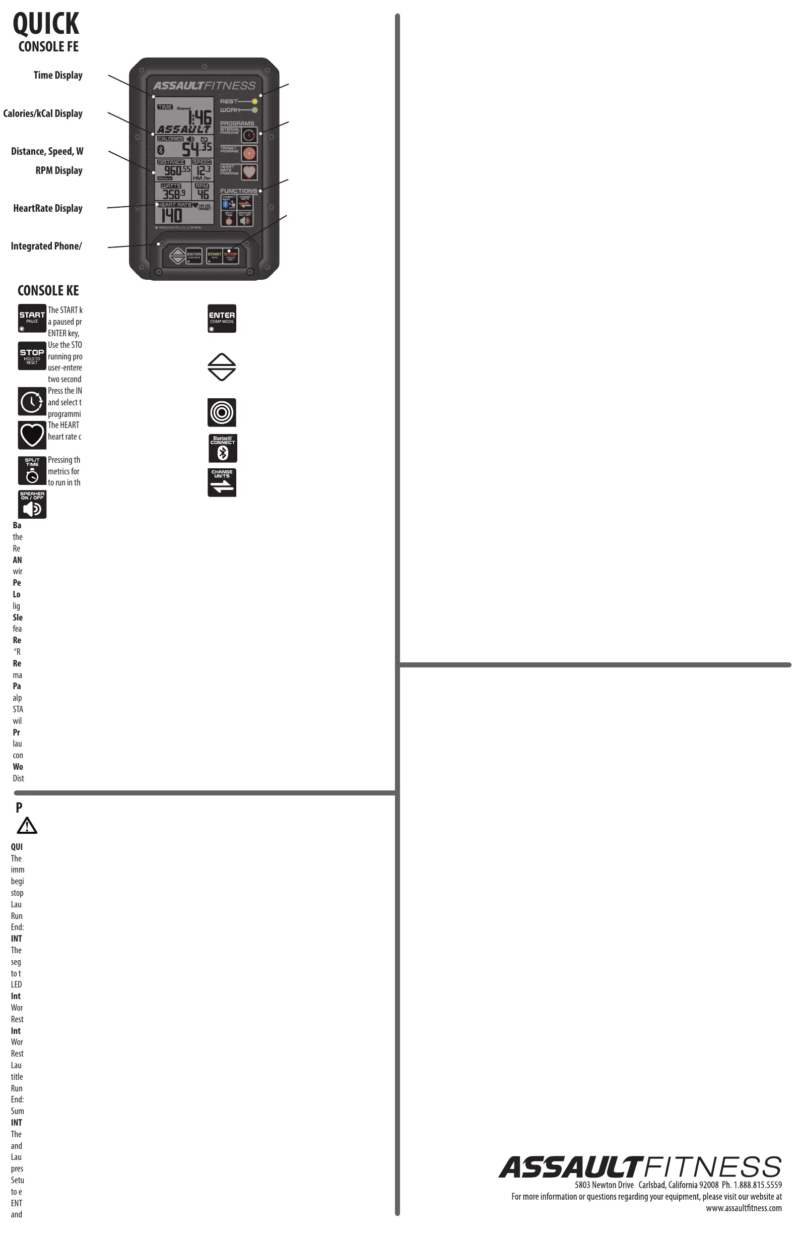 alpha-numeric display. The console will provide prompts such as HR Low followed by Increase Speed, or HR High/Decrease Speed to