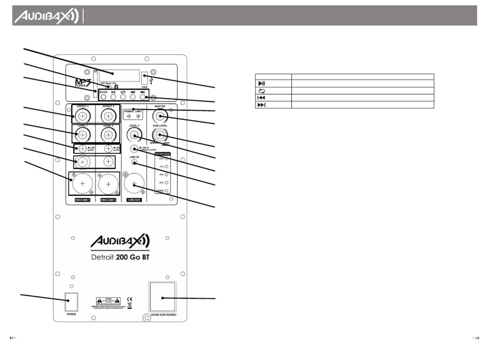 Használati útmutató Audibax Detroit 200 Go BT