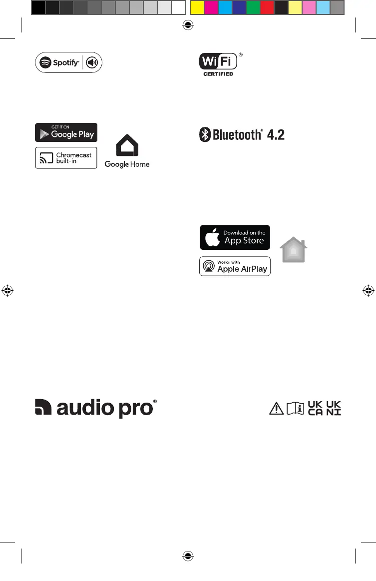 Audio Pro wireless technology, Google Cast, AirPlay 2, Spotify Connect.