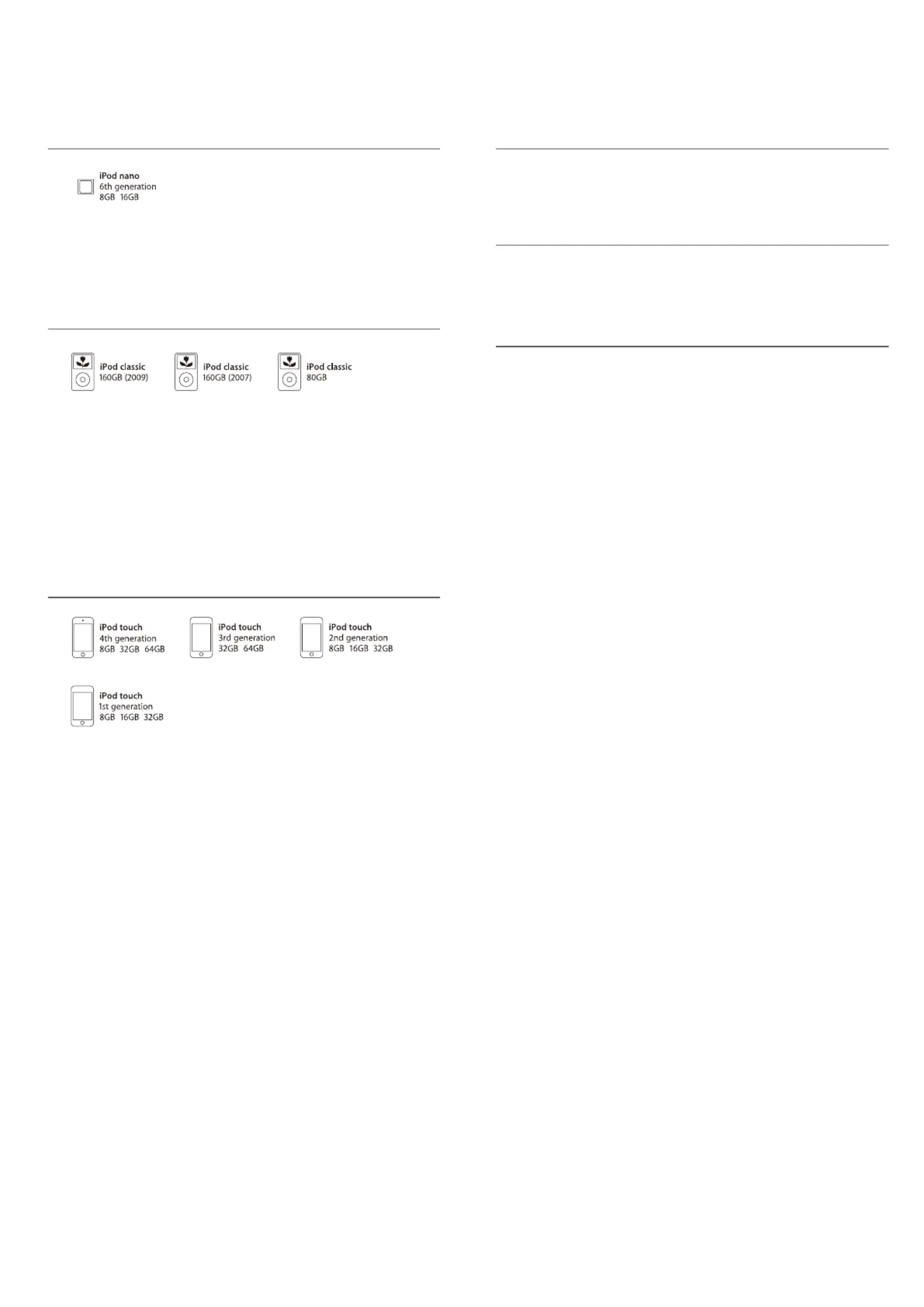 ○第5世代 iPodと第1世代 iPodnano の動作制限事項