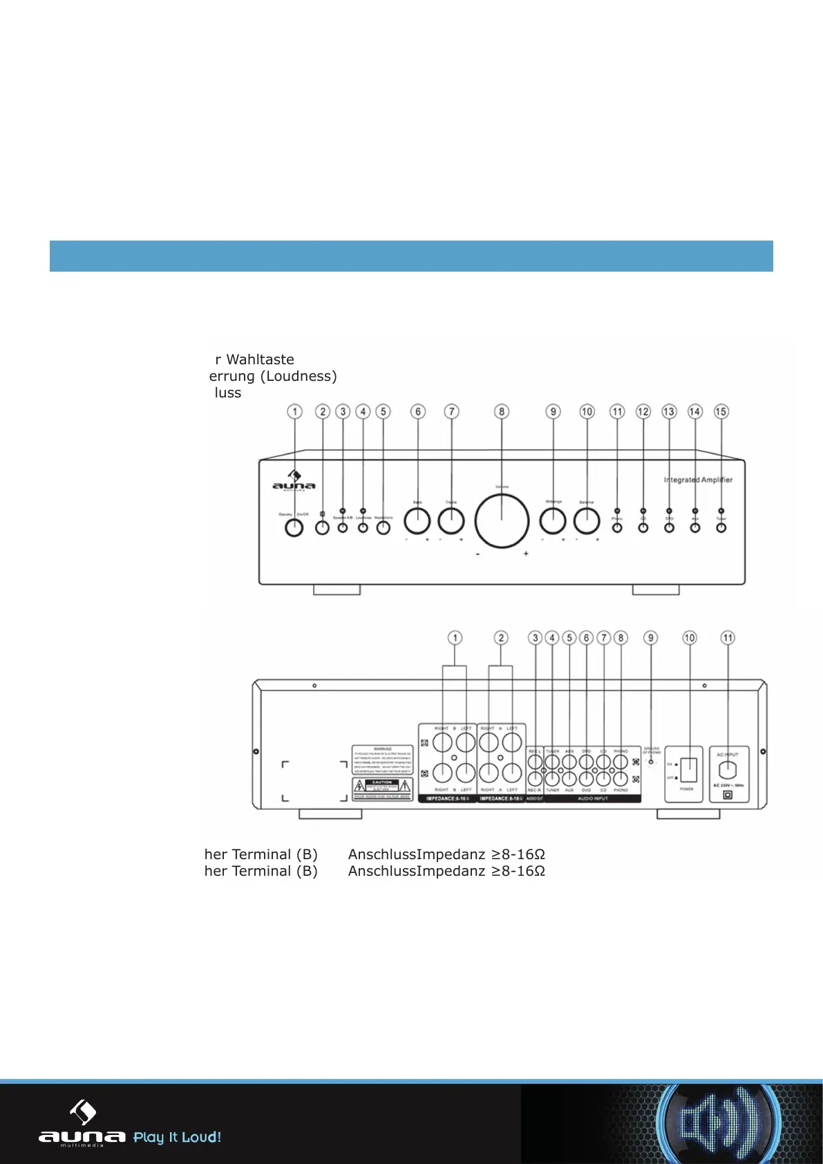 1. FrontlautsprecherTerminal(B) AnschlussImpedanz≥8-16Ω