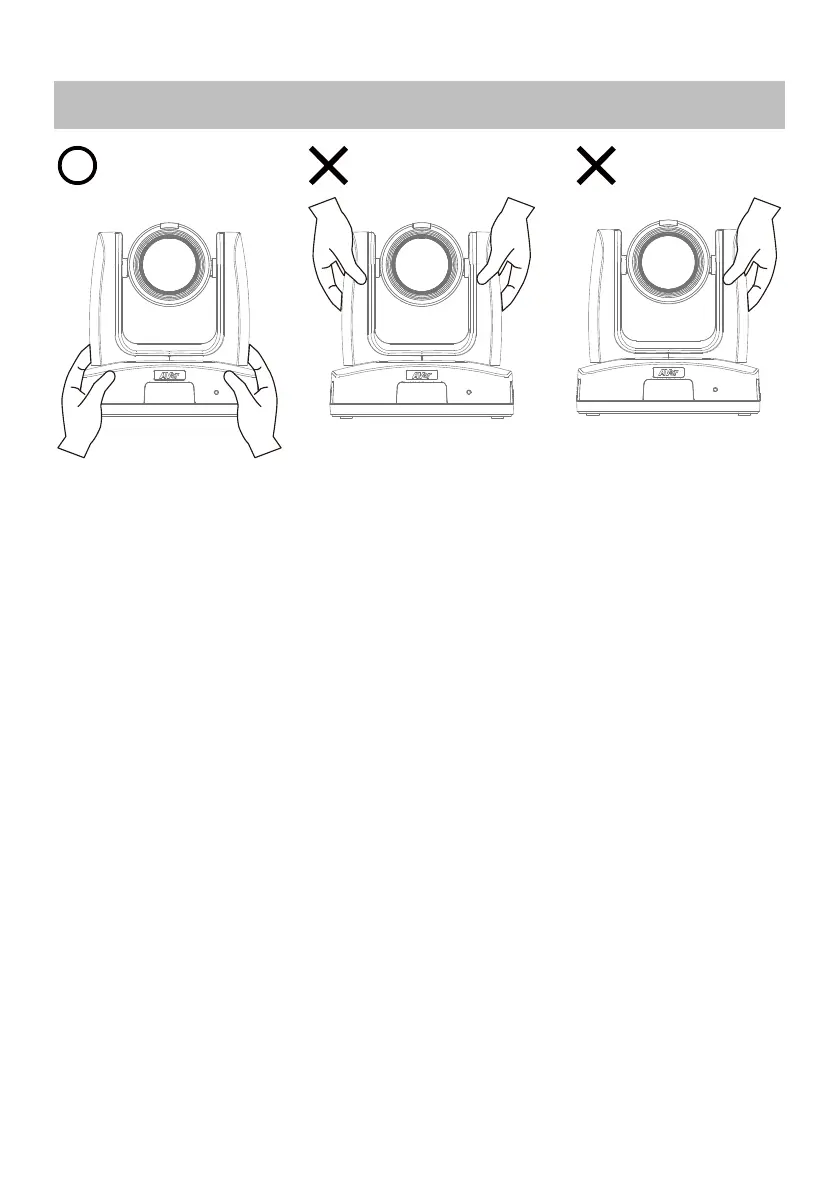Hold the bottom of the camera with both hands to move the camera. Do not grab the lens or lens