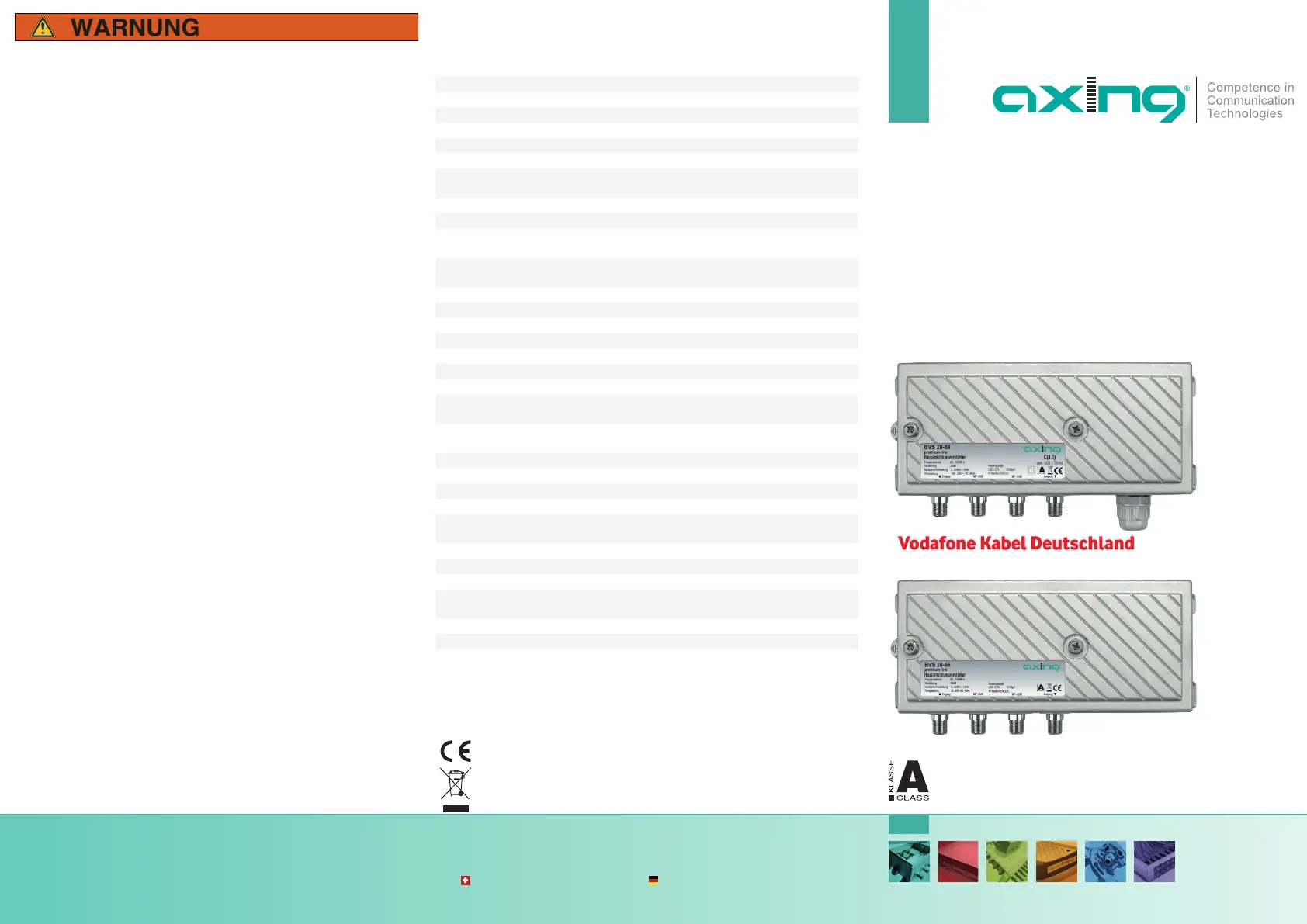 Olvassa el alább 📖 a magyar nyelvű használati útmutatót Axing BVS 20-69 (4 oldal) a TV jelerősítő kategóriában. Ezt az útmutatót 17 ember találta hasznosnak és 9 felhasználó értékelte átlagosan 4.2 csillagra