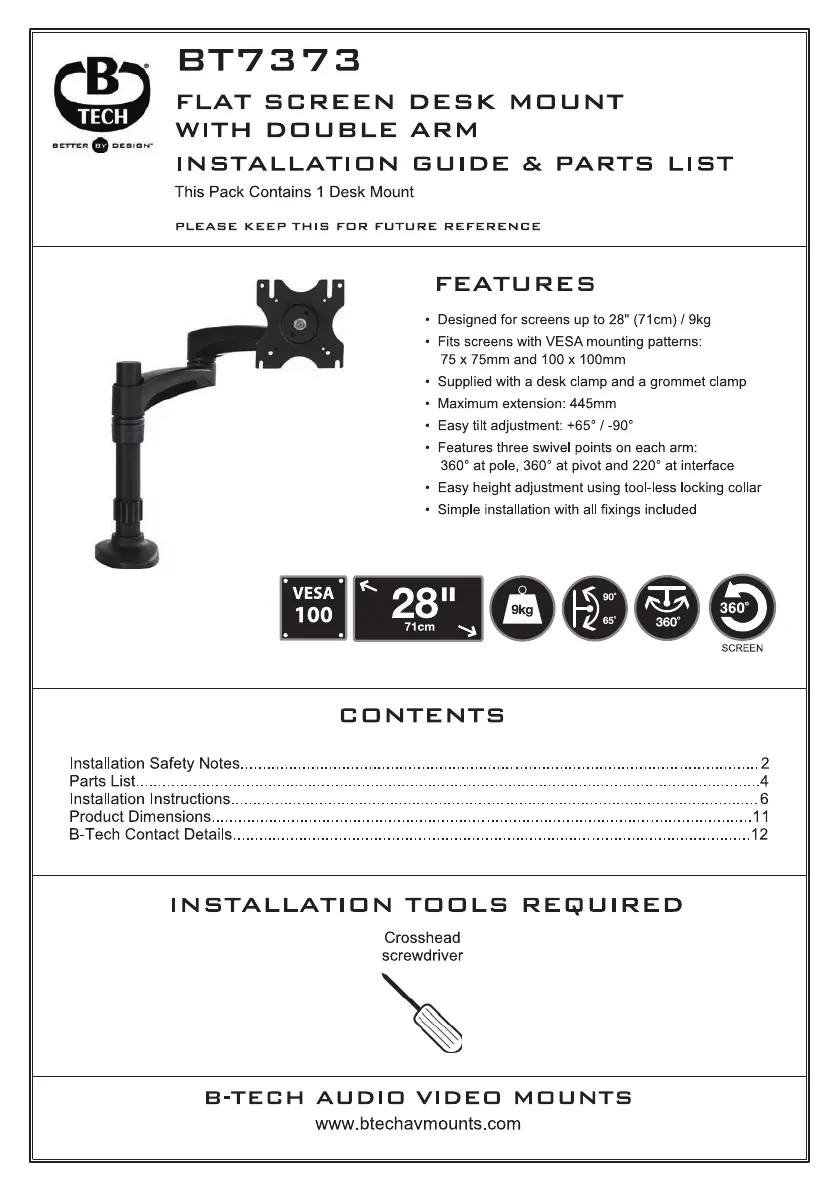 Olvassa el alább 📖 a magyar nyelvű használati útmutatót B-tech BT7373/GB (16 oldal) a Lapos panel támogatás kategóriában. Ezt az útmutatót 13 ember találta hasznosnak és 7 felhasználó értékelte átlagosan 3.5 csillagra