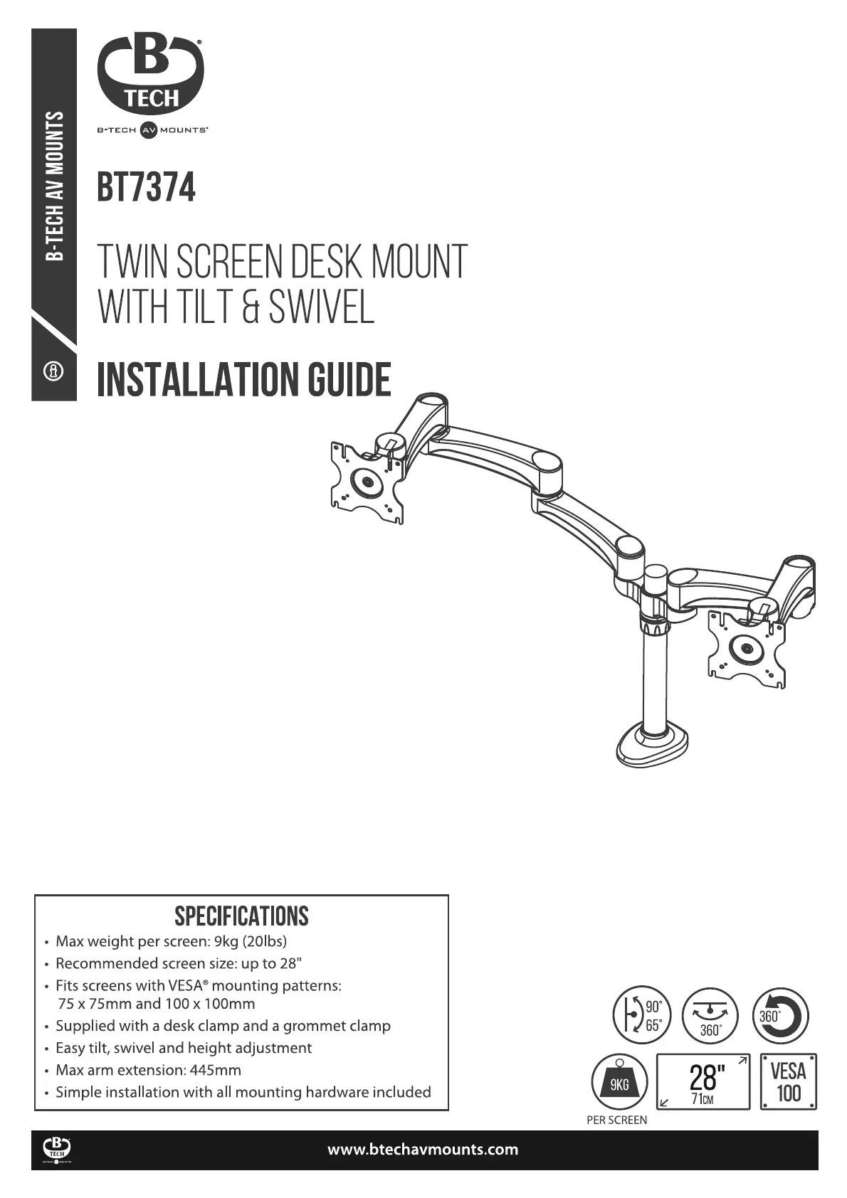 Olvassa el alább 📖 a magyar nyelvű használati útmutatót B-tech BT7374/GB (16 oldal) a Lapos panel támogatás kategóriában. Ezt az útmutatót 20 ember találta hasznosnak és 10.5 felhasználó értékelte átlagosan 4.9 csillagra