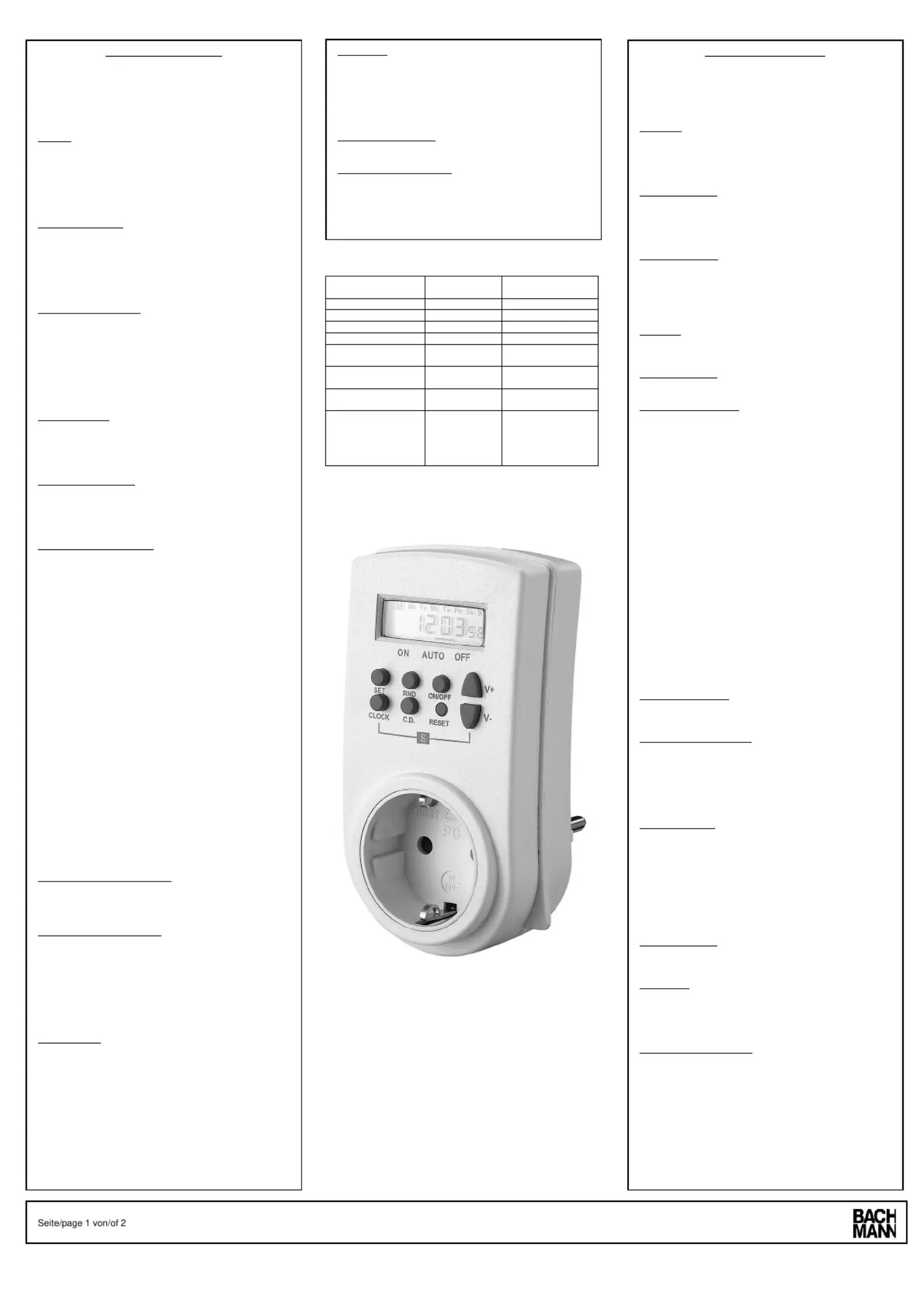Olvassa el alább 📖 a magyar nyelvű használati útmutatót Bachmann 852.103 (1 oldal) a Időkapcsoló kategóriában. Ezt az útmutatót 17 ember találta hasznosnak és 9 felhasználó értékelte átlagosan 4.3 csillagra