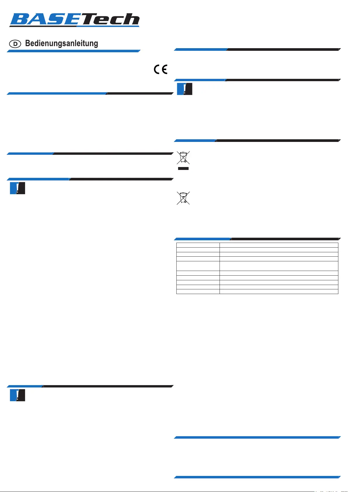 Entfernen Sie die Batterien, wenn Sie das Gerät längere Zeit nicht verwenden, um Beschädigungen durch •