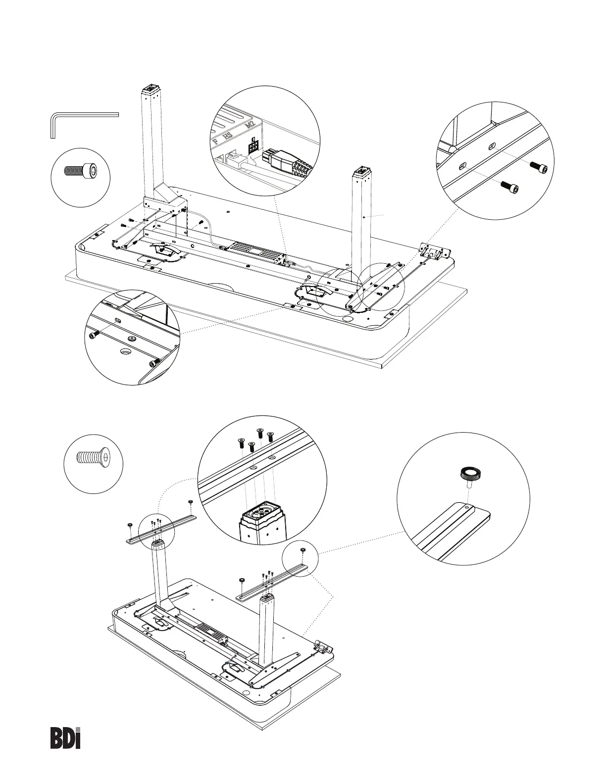 the desk. Thread the 4 levelers H7 into the bottom of the foot corners.