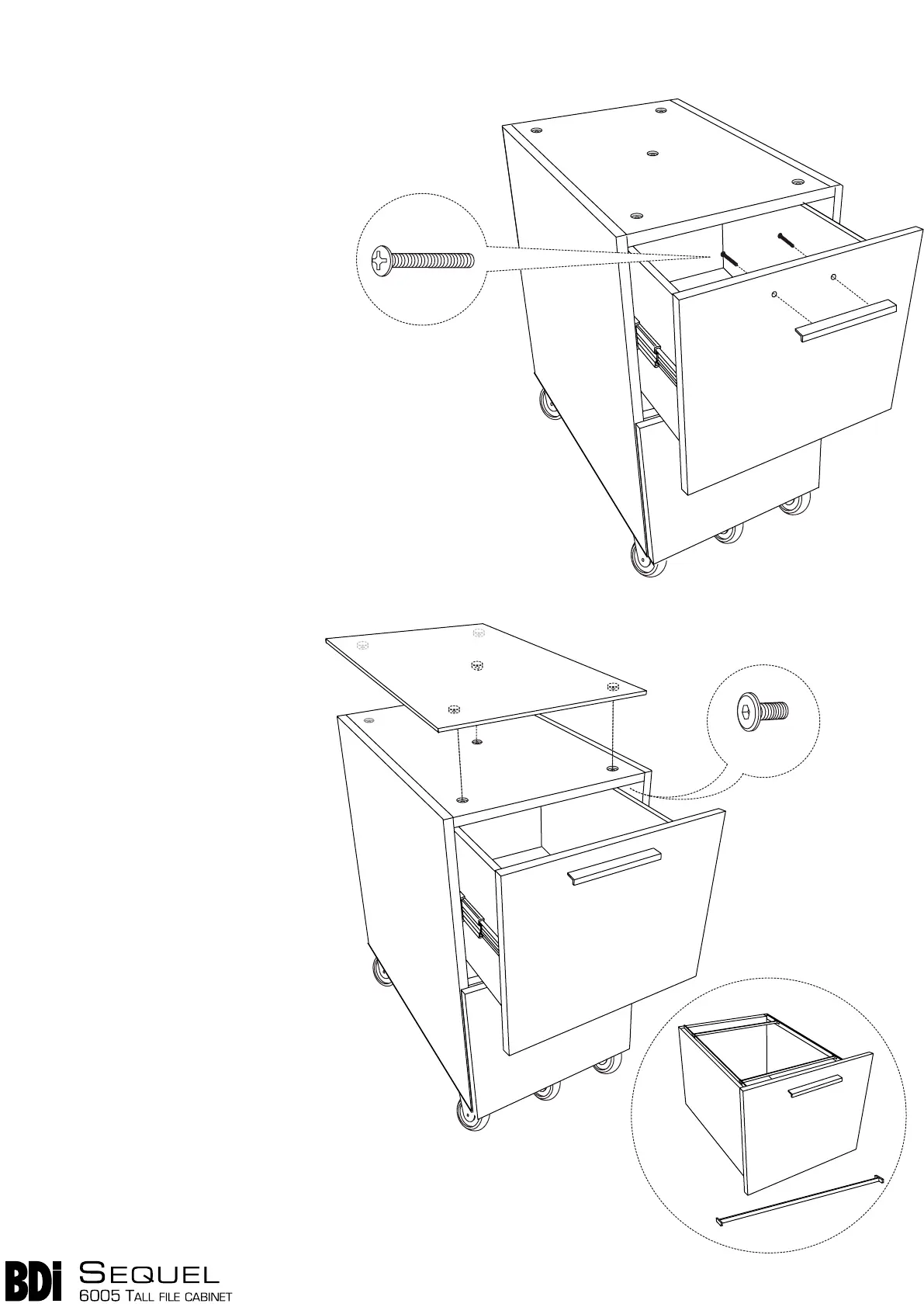 installed casters, then install one Drawer Pull (H) per drawer
