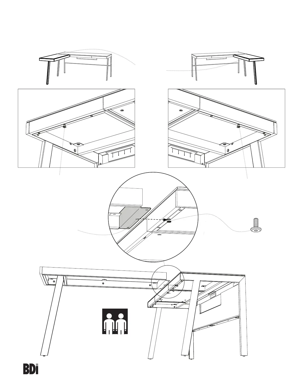 Step 3 - Determine of you want the return on the left or right side of the desk. Find the 3 threaded insert below