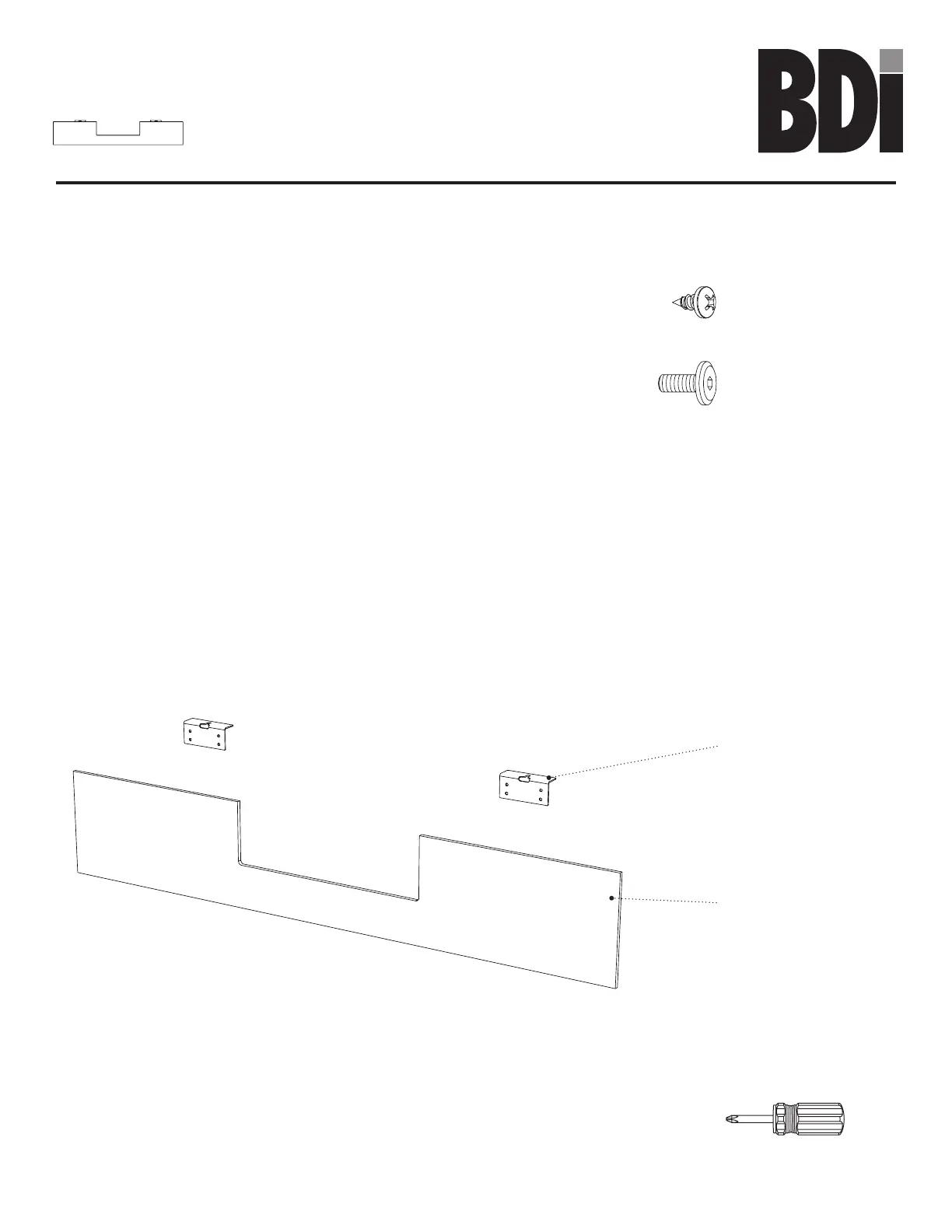 Attach the 2 metal brackets to the modesty panel as shown with the 8 wood screws provided going into the