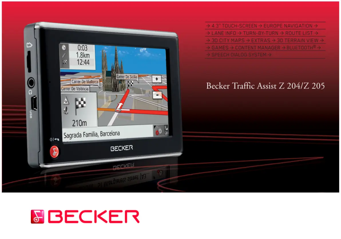 Olvassa el alább 📖 a magyar nyelvű használati útmutatót Becker Traffic Assist Z 205 (115 oldal) a Navigator kategóriában. Ezt az útmutatót 16 ember találta hasznosnak és 5 felhasználó értékelte átlagosan 4.9 csillagra