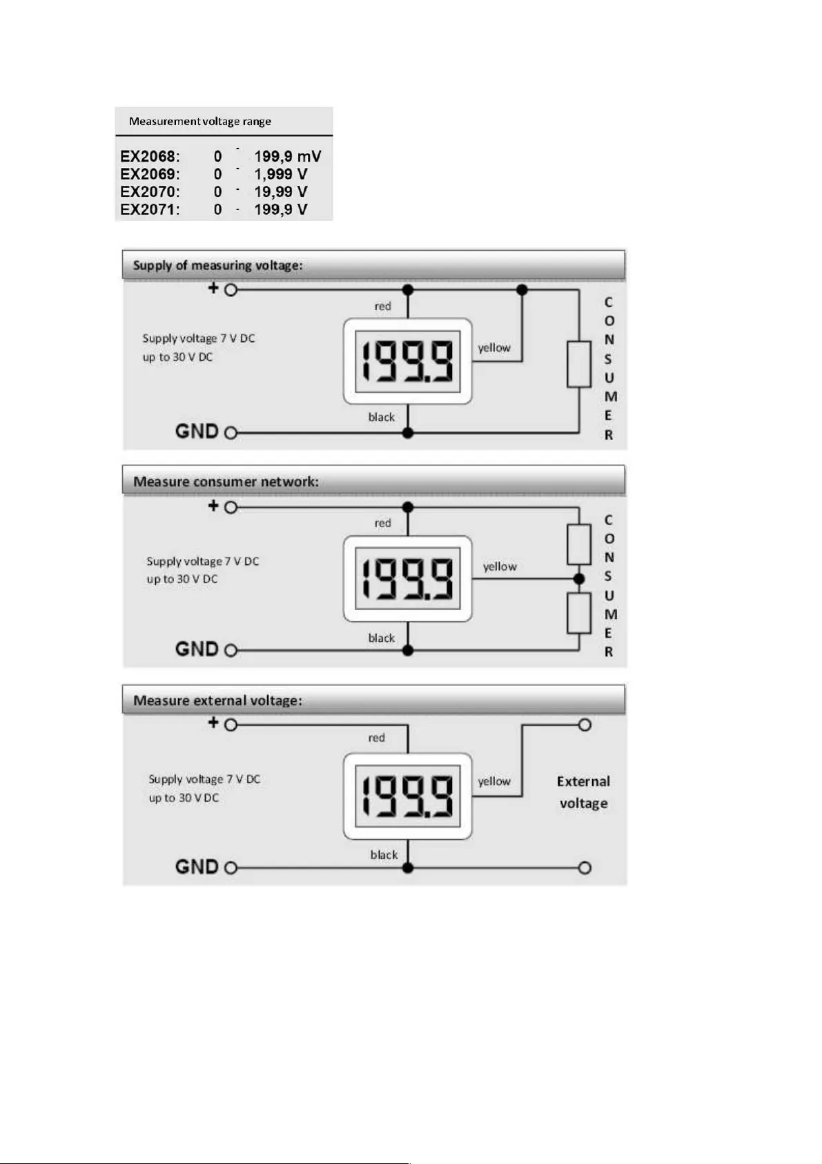 Note: In contrast to commercially available panel meters can be voltage identical to the operating