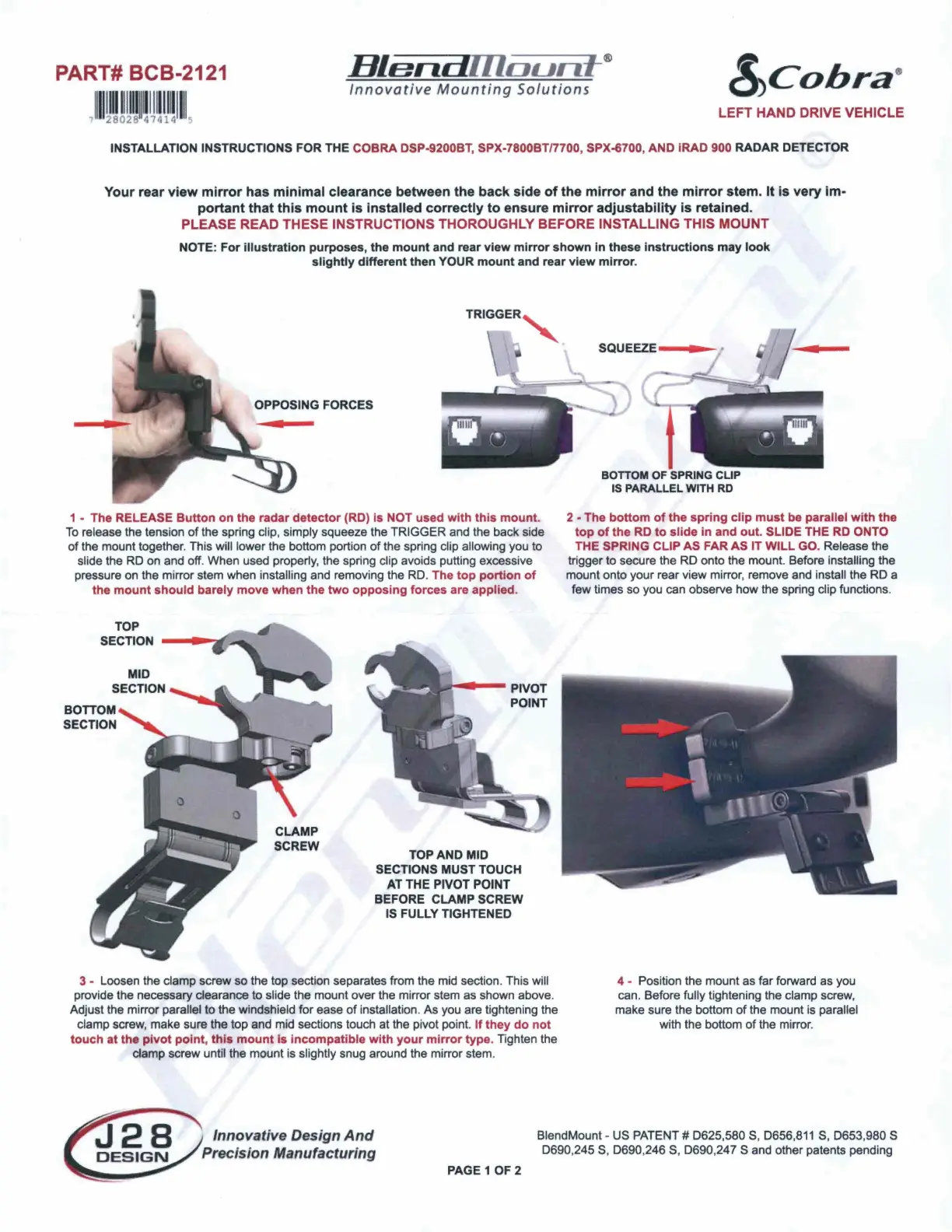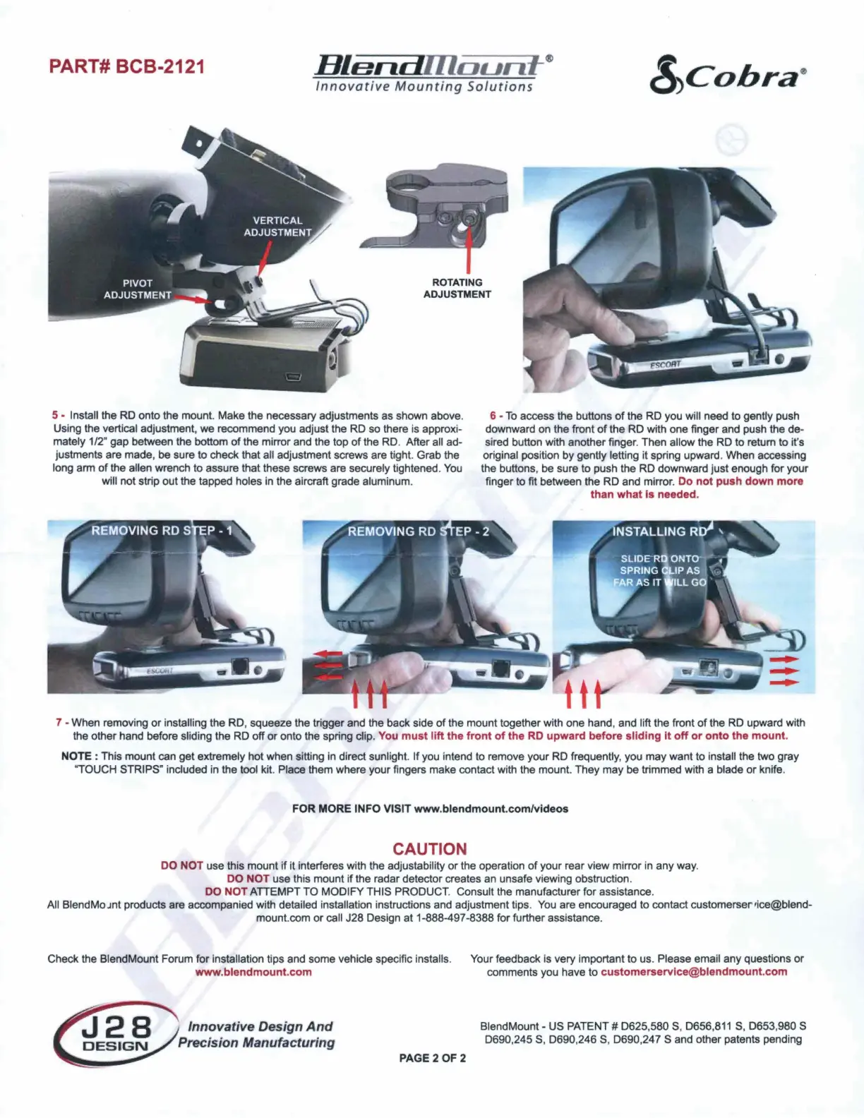 DO NOT use this mount if the radar detector creates an unsafe viewing obstruction.