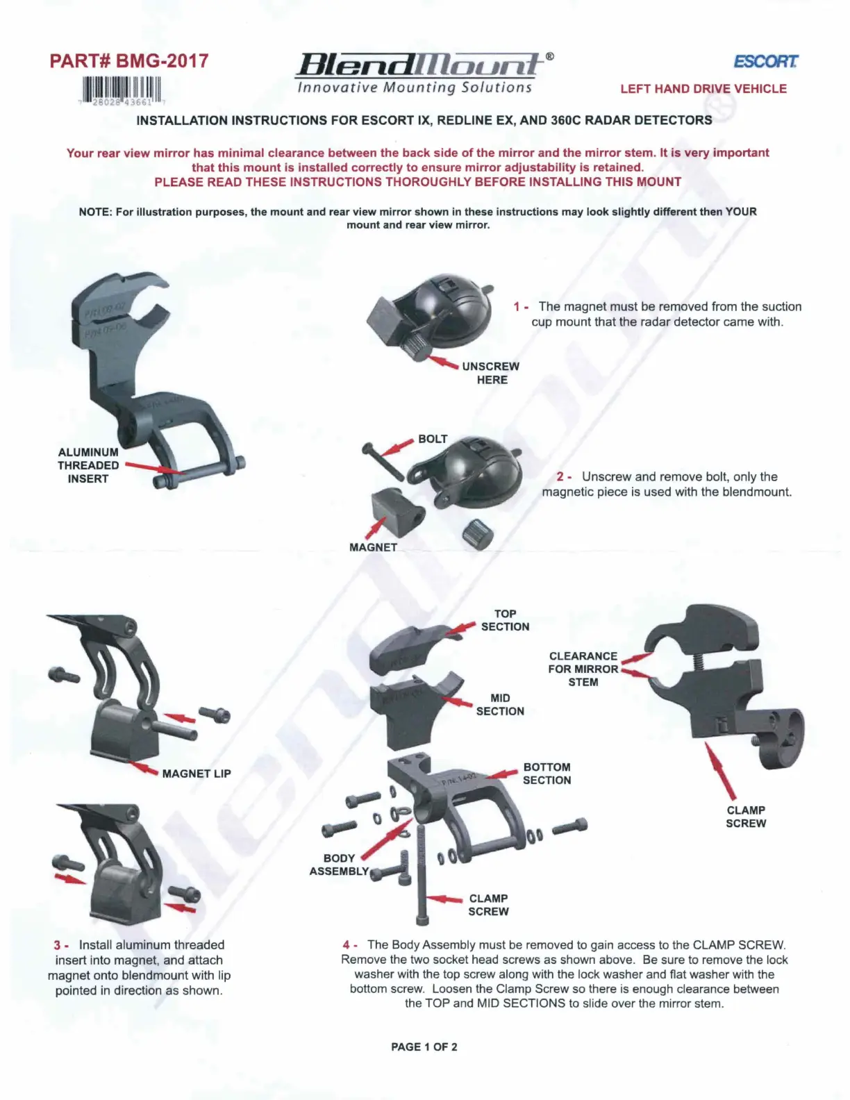 Olvassa el alább 📖 a magyar nyelvű használati útmutatót BlendMount BMG-2017 (2 oldal) a nincs kategorizálva kategóriában. Ezt az útmutatót 11 ember találta hasznosnak és 6 felhasználó értékelte átlagosan 4.7 csillagra