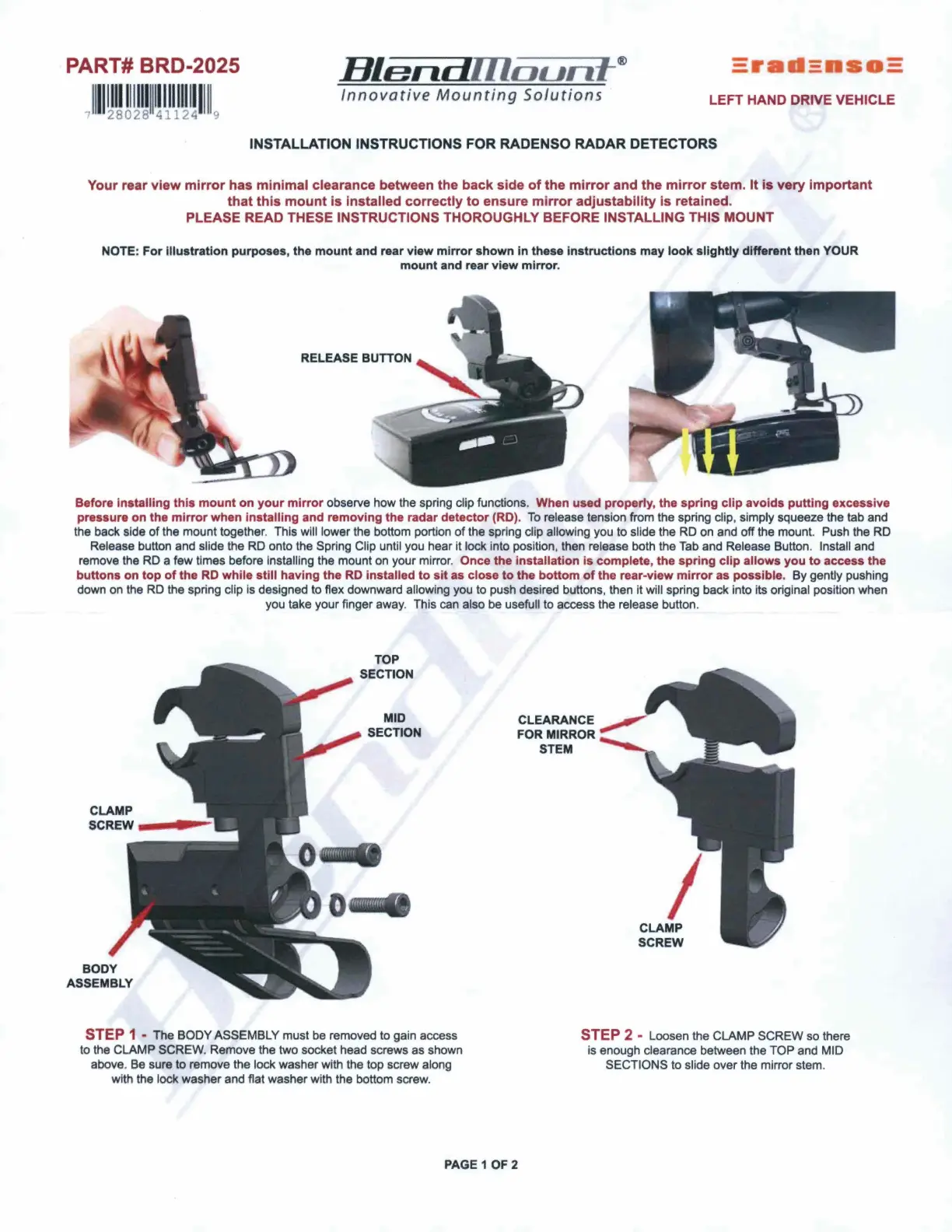 Olvassa el alább 📖 a magyar nyelvű használati útmutatót BlendMount BRD-2025 (2 oldal) a nincs kategorizálva kategóriában. Ezt az útmutatót 13 ember találta hasznosnak és 7 felhasználó értékelte átlagosan 4.6 csillagra