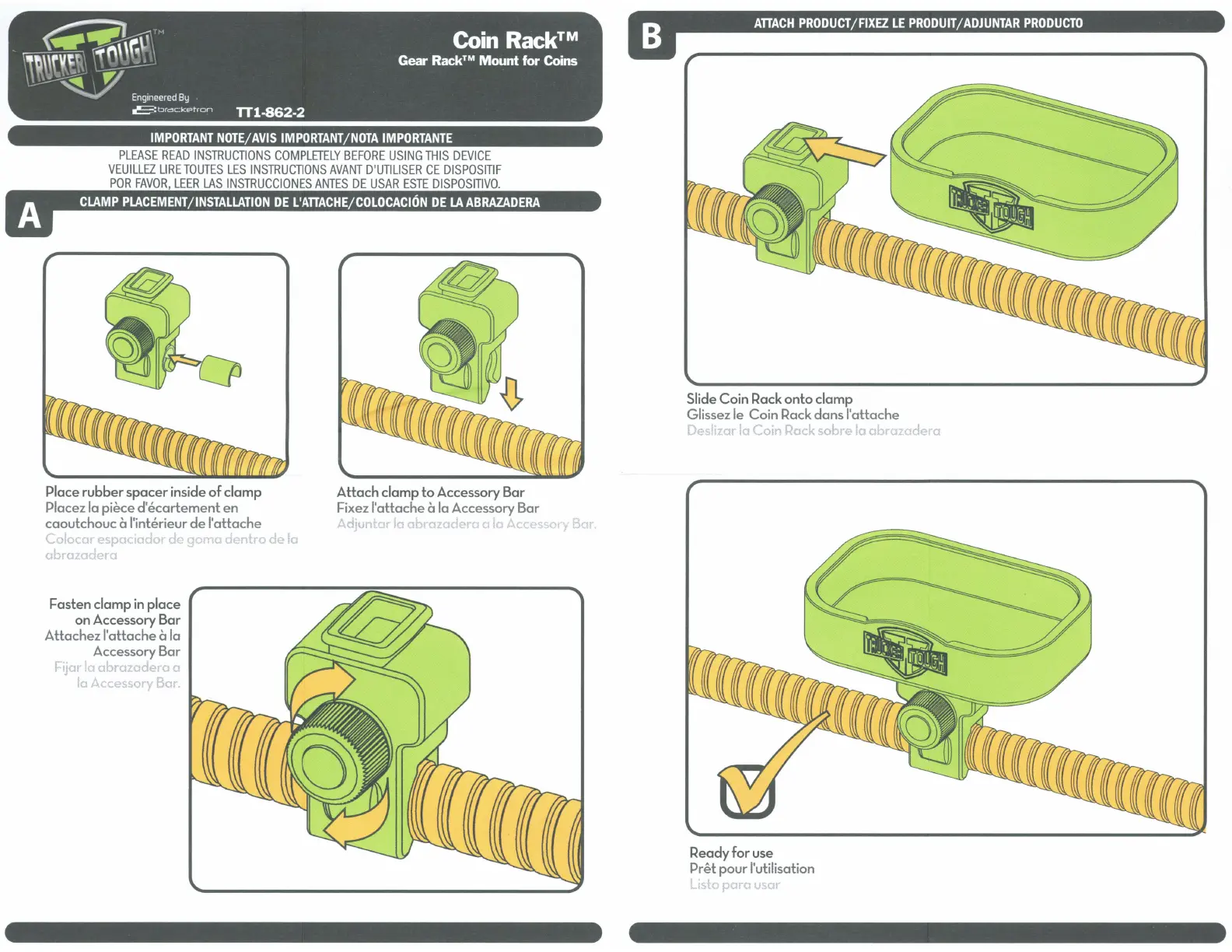 Olvassa el alább 📖 a magyar nyelvű használati útmutatót Bracketron Coin Rack TT1-862-2 (7 oldal) a nincs kategorizálva kategóriában. Ezt az útmutatót 11 ember találta hasznosnak és 6 felhasználó értékelte átlagosan 4.9 csillagra