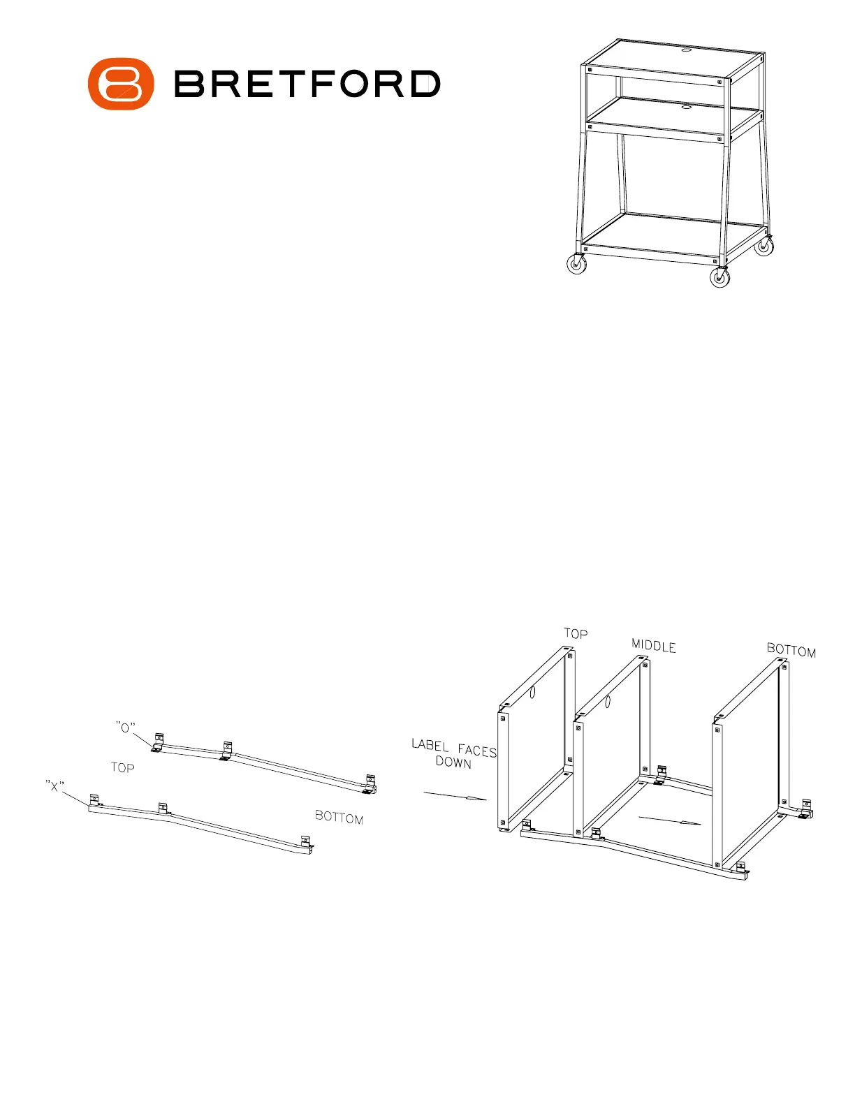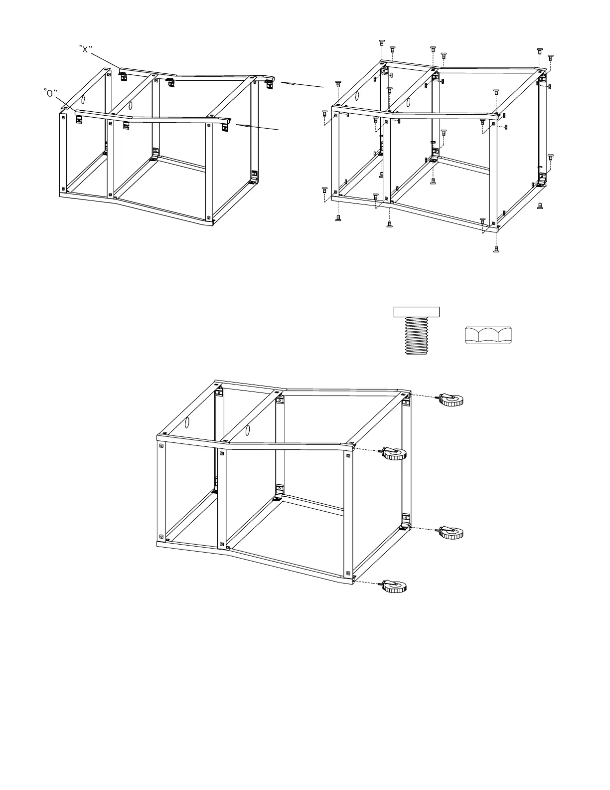 Position the front legs (stamped "O" & "X") with the brackets facing up and in as shown in Figure 1.