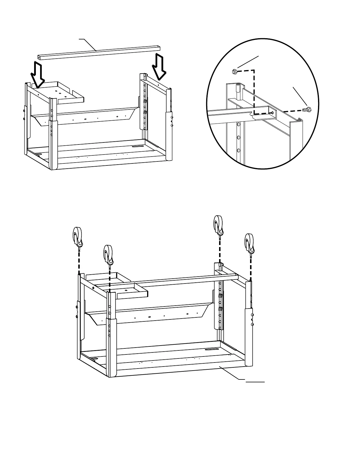 assembly into the leg extensions from the top section assembly as shown. Align the mounting holes until the