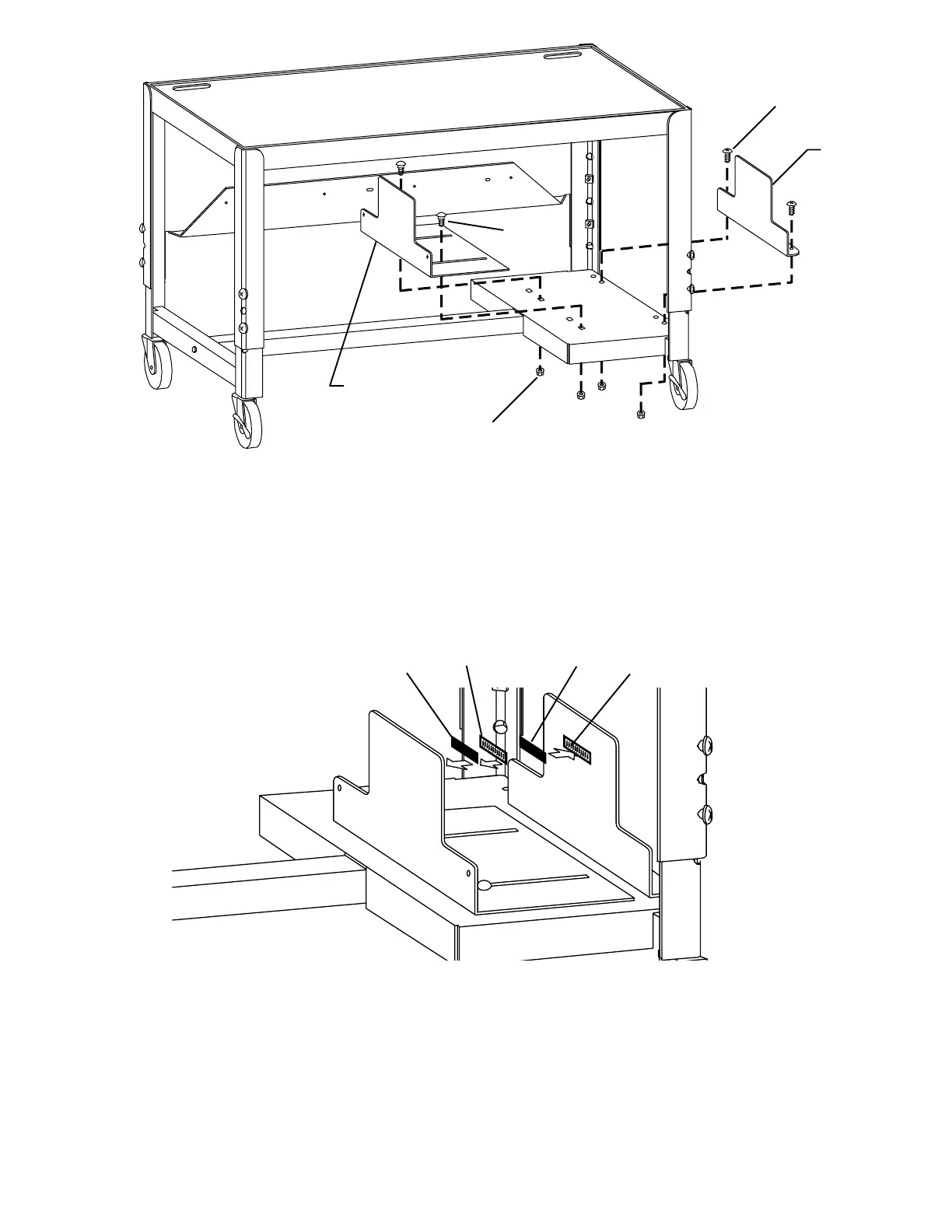 whether the side shelf is mounted on the left or right side of the table. Attach stationary cpu side bracket with