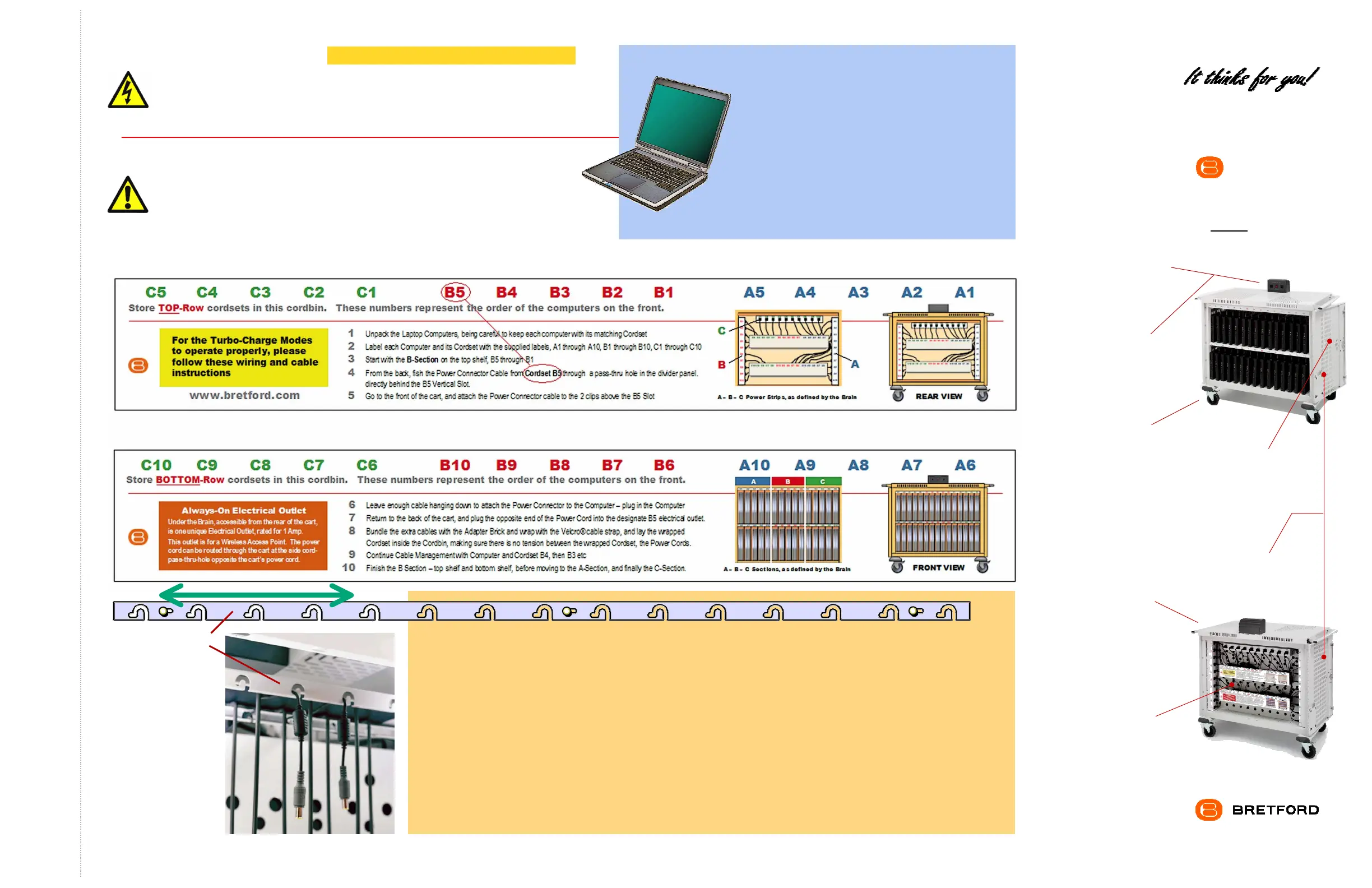ELECTRICAL: The Power Bars inside the laptop cart are only for charging laptop computers. Any other use may cause an