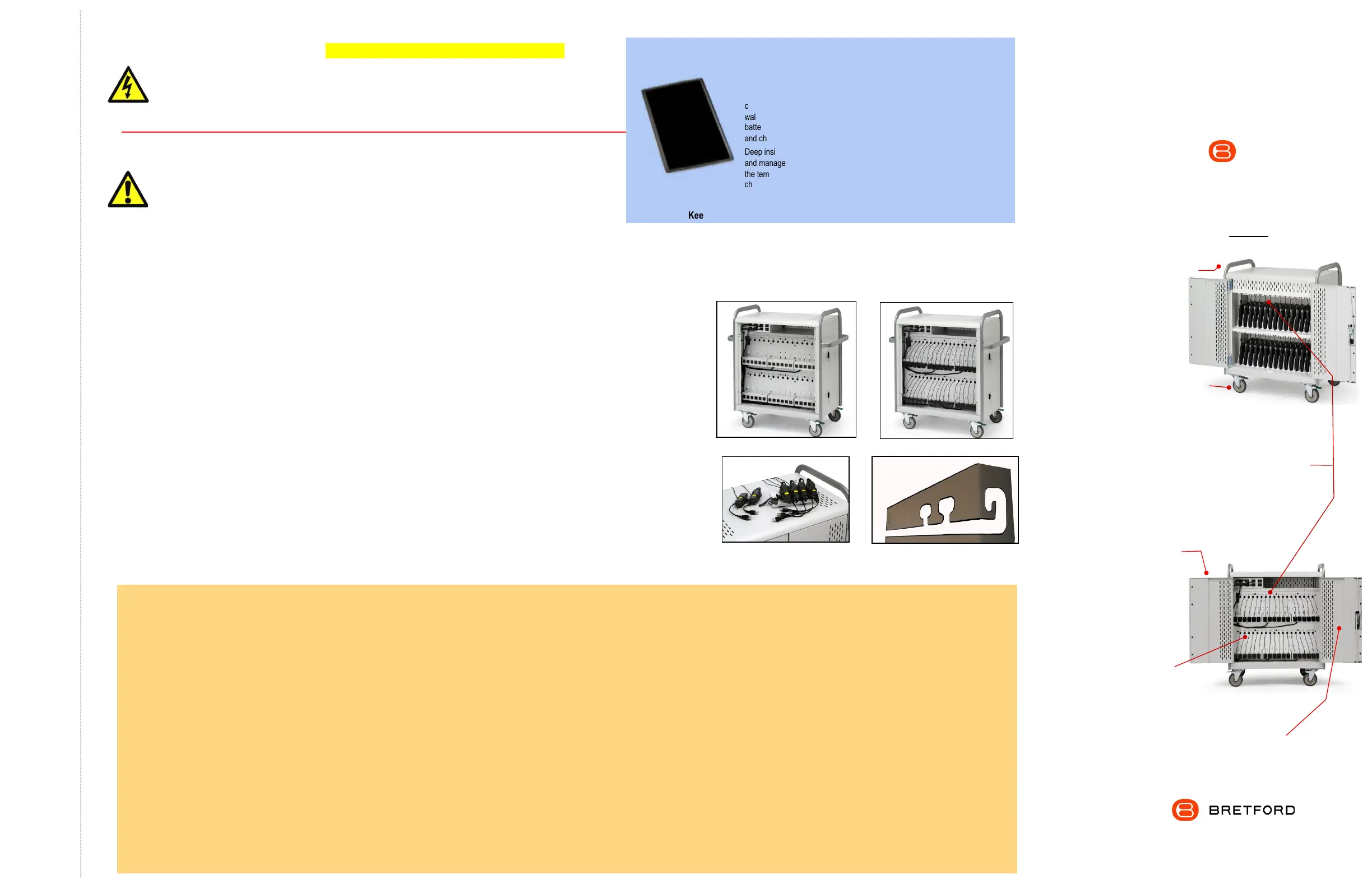 ELECTRICAL: The power strips inside the tablet cart are only for charging tablet computers. Any other use may cause an