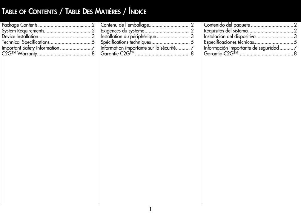 Olvassa el alább 📖 a magyar nyelvű használati útmutatót C2G 29358 (10 oldal) a Vevő kategóriában. Ezt az útmutatót 13 ember találta hasznosnak és 7 felhasználó értékelte átlagosan 4.4 csillagra