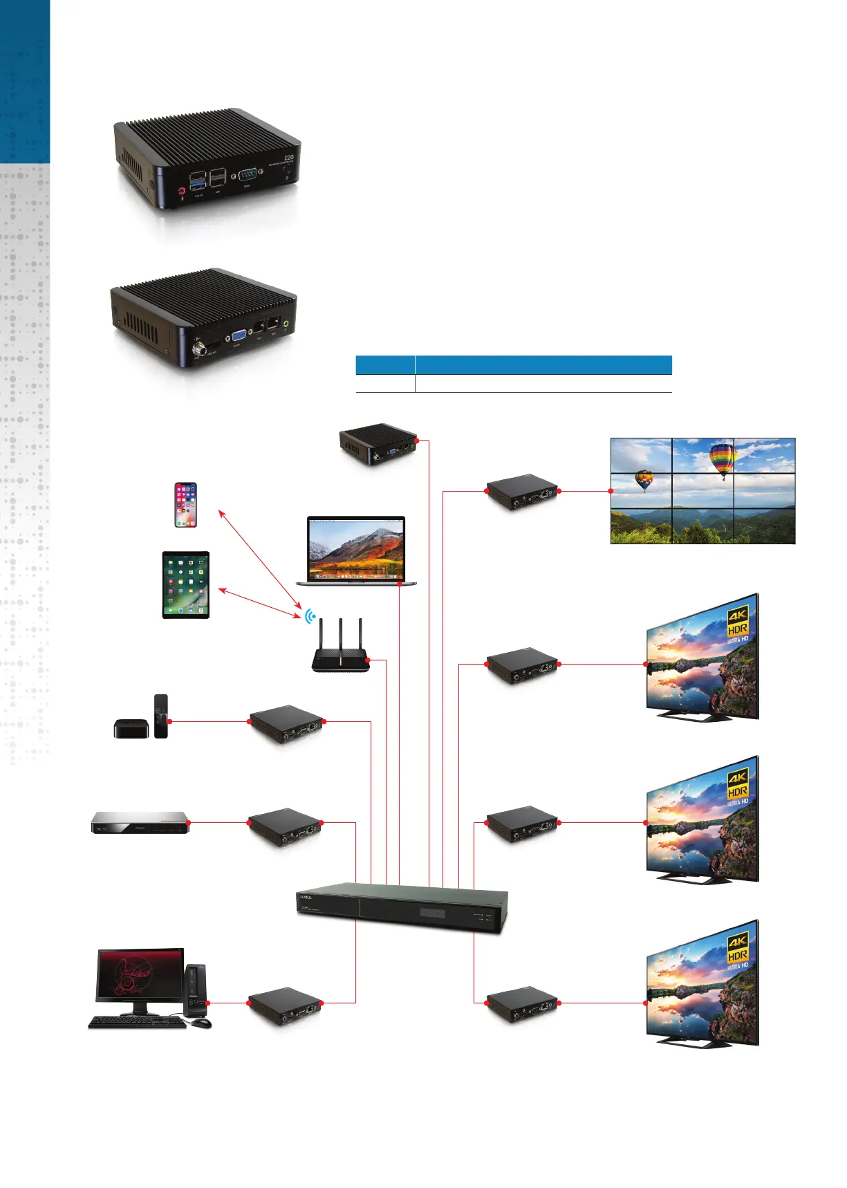 configurations offer the flexibility to support a digital signage system, video wall, and point to point extension,