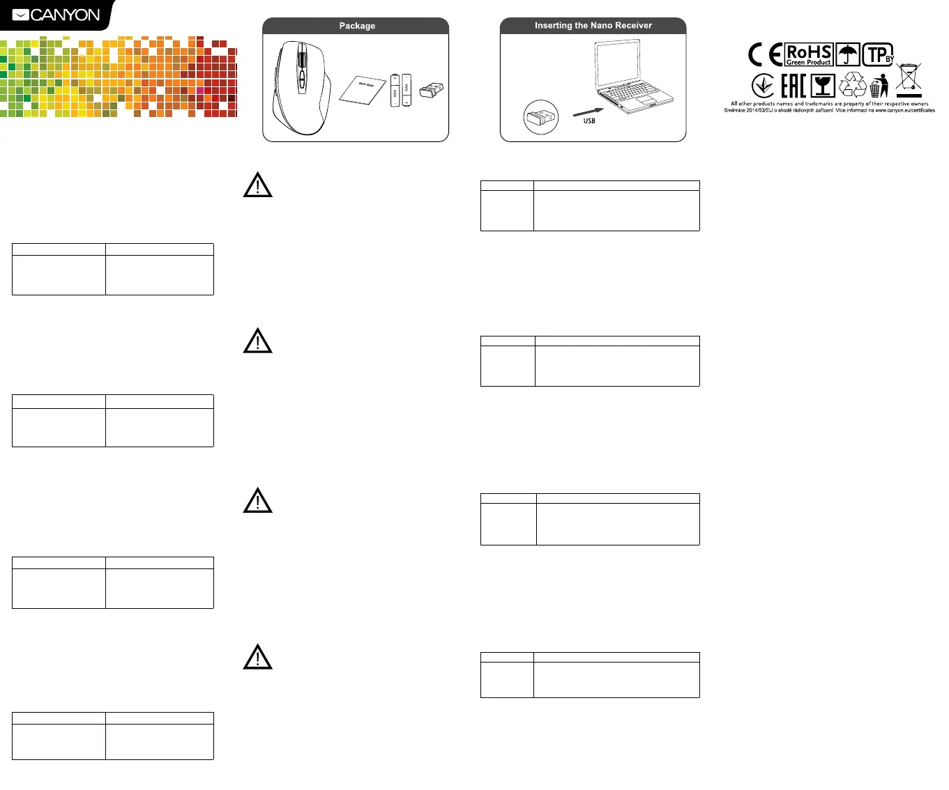 Olvassa el alább 📖 a magyar nyelvű használati útmutatót Canyon MW-21 (2 oldal) a egér kategóriában. Ezt az útmutatót 20 ember találta hasznosnak és 10.5 felhasználó értékelte átlagosan 3.9 csillagra