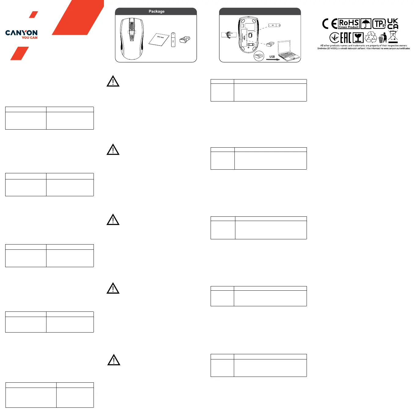 Olvassa el alább 📖 a magyar nyelvű használati útmutatót Canyon MW-7 (2 oldal) a egér kategóriában. Ezt az útmutatót 16 ember találta hasznosnak és 8.5 felhasználó értékelte átlagosan 5.0 csillagra