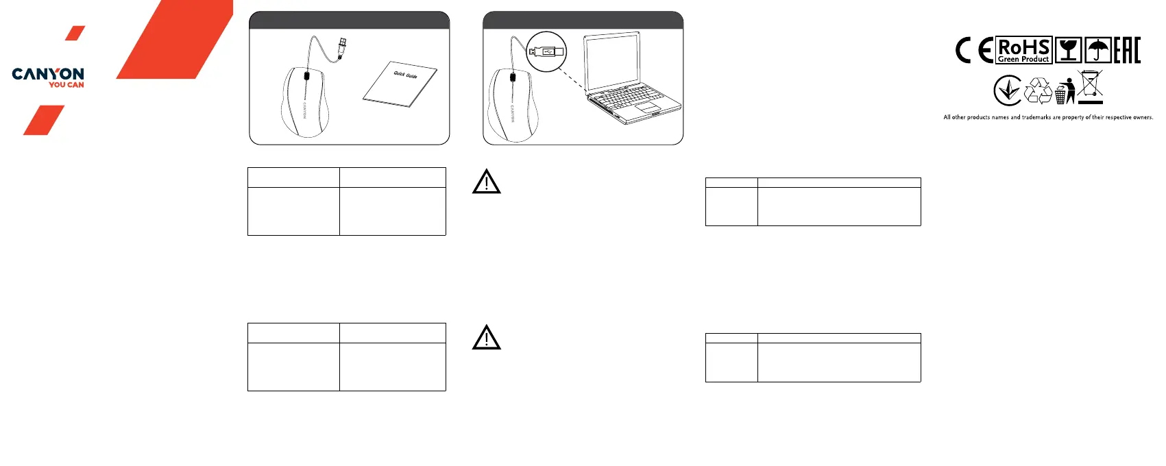 Olvassa el alább 📖 a magyar nyelvű használati útmutatót Canyon W-05 (2 oldal) a egér kategóriában. Ezt az útmutatót 17 ember találta hasznosnak és 9 felhasználó értékelte átlagosan 4.8 csillagra