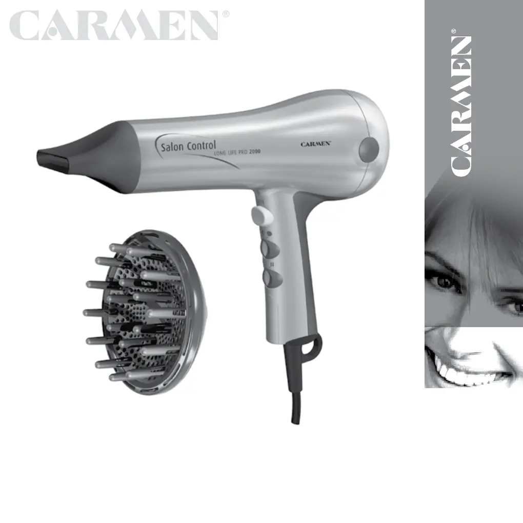 Olvassa el alább 📖 a magyar nyelvű használati útmutatót Carmen HD2050 (17 oldal) a hajszárító kategóriában. Ezt az útmutatót 16 ember találta hasznosnak és 3 felhasználó értékelte átlagosan 4.5 csillagra