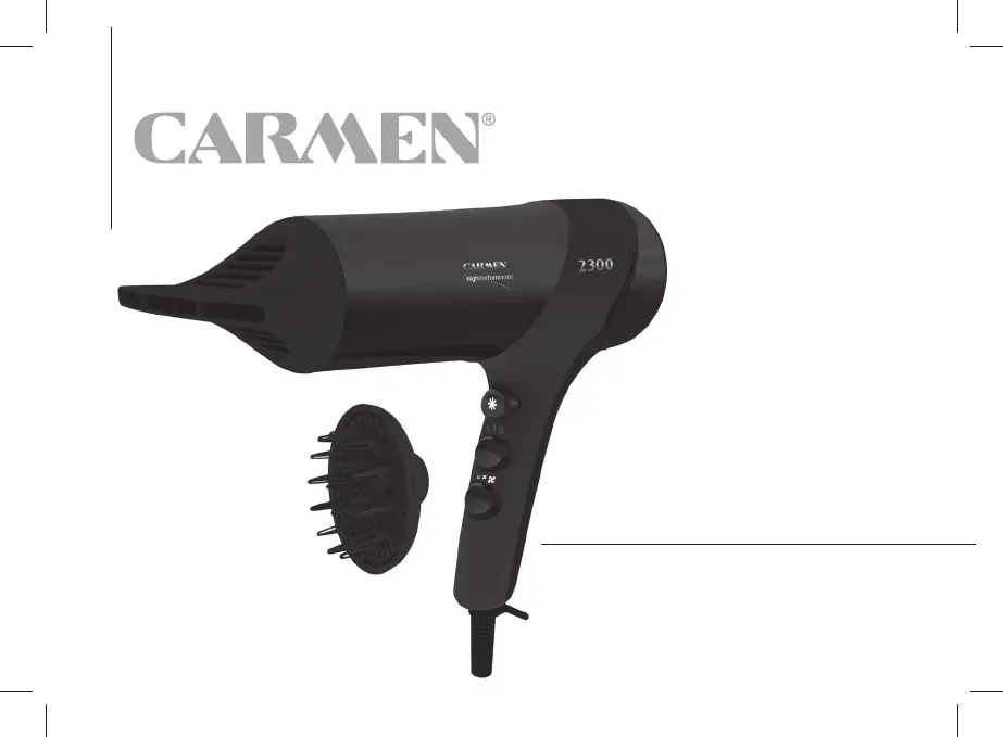 Olvassa el alább 📖 a magyar nyelvű használati útmutatót Carmen High Performance 2300 HD2390 (40 oldal) a hajszárító kategóriában. Ezt az útmutatót 10 ember találta hasznosnak és 3 felhasználó értékelte átlagosan 4.2 csillagra