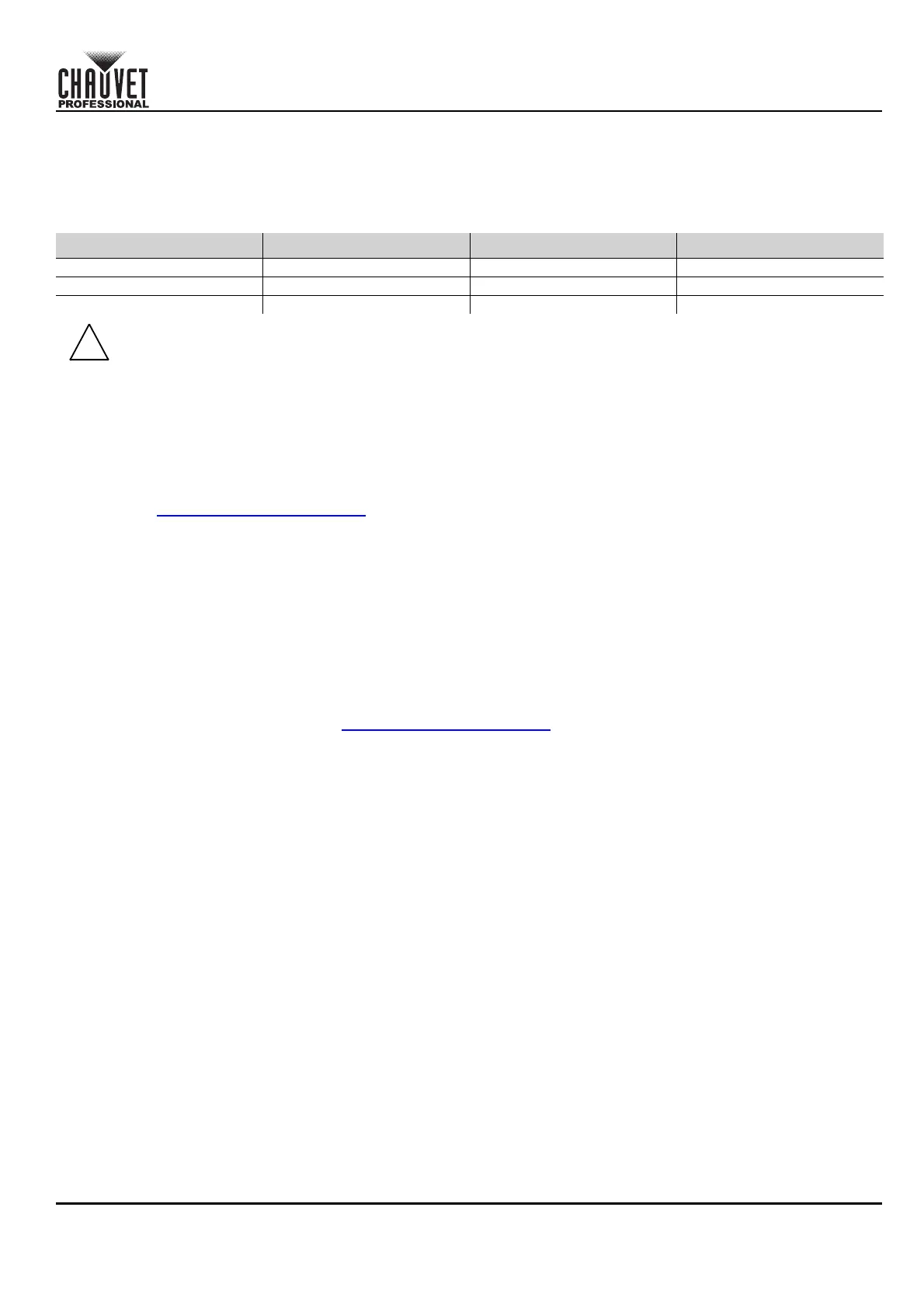 menu options, and DMX values. Download the User Manual from www.chauvetprofessional.com