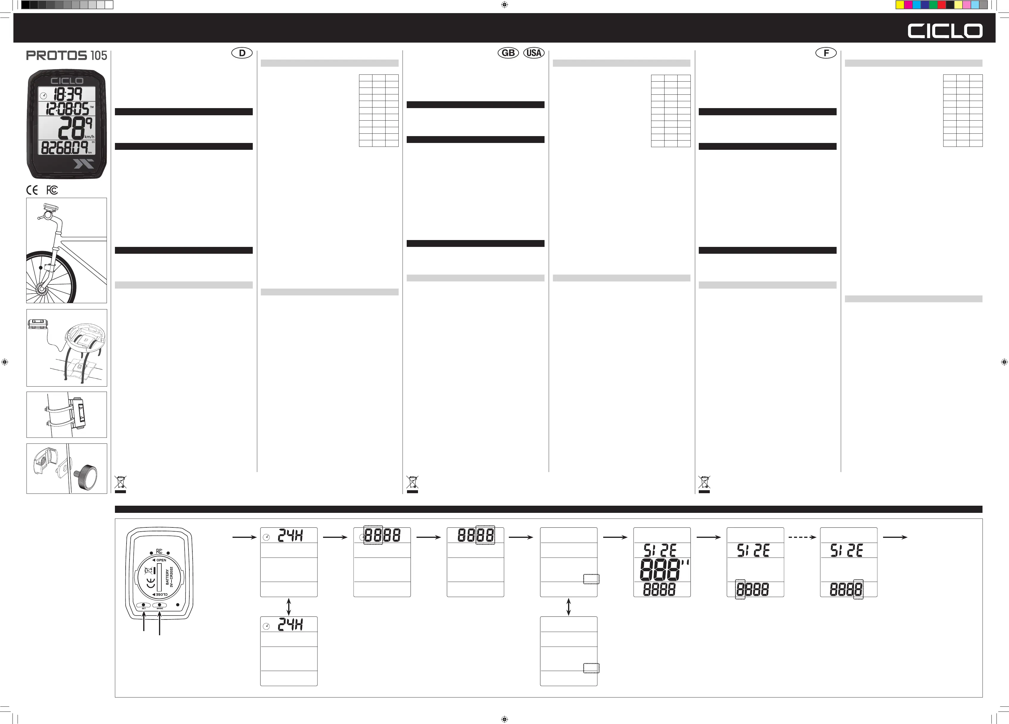 Olvassa el alább 📖 a magyar nyelvű használati útmutatót Ciclo Protos 105 (3 oldal) a kerékpár számítógép kategóriában. Ezt az útmutatót 23 ember találta hasznosnak és 12 felhasználó értékelte átlagosan 3.6 csillagra