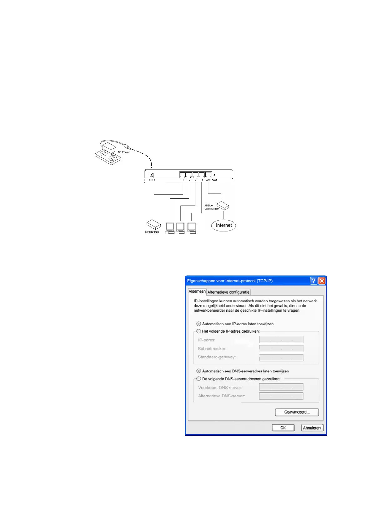 Met de bijgeleverde RJ-45 Netwerk kabel kunt u uw ADSL of Kabel modem aansluiten op uw Conceptronic C100BRS4H