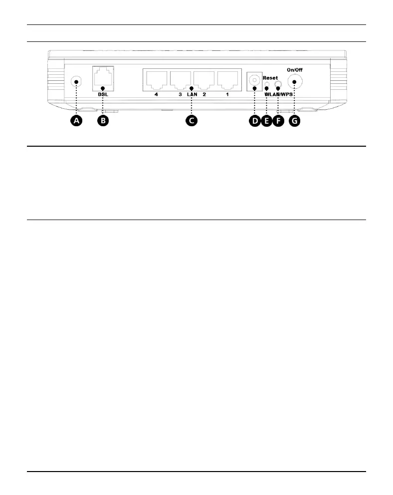 D Stroomaansluiting Hier sluit u de netvoeding aan op de modem router.