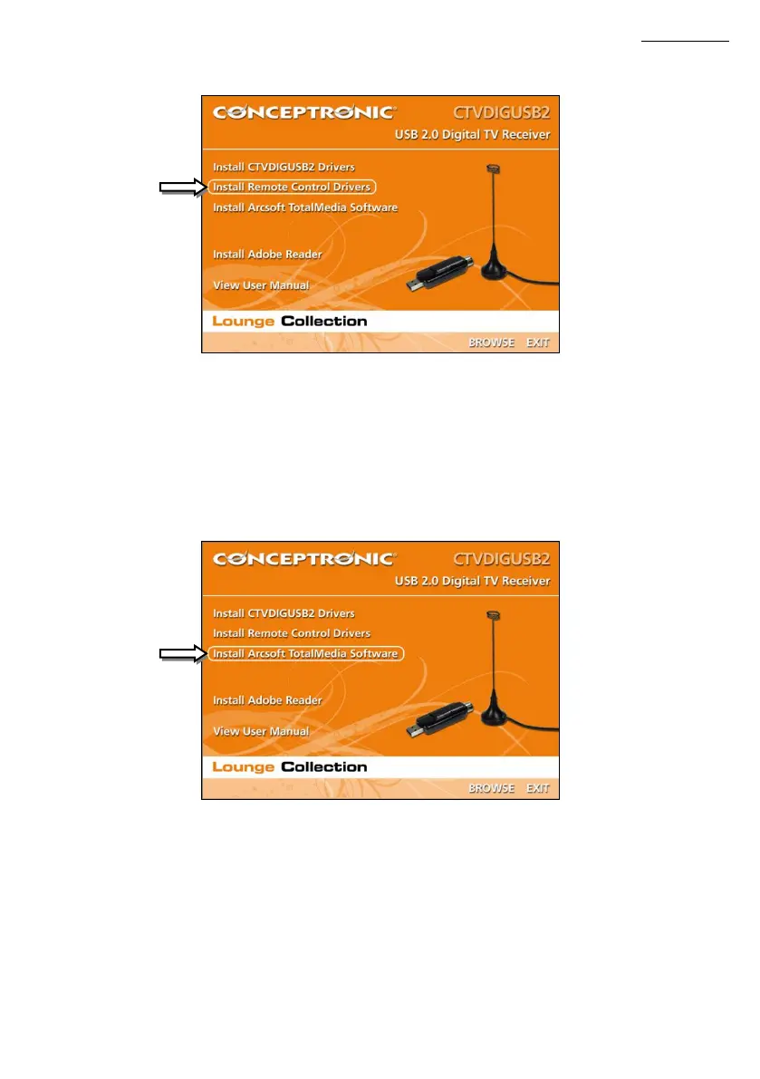 G. Selecteer de keuze “Install Arcsoft TotalMedia Software” (Arcsoft TotalMedia software installeren)