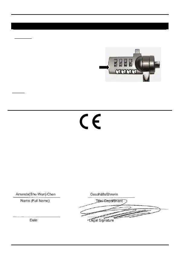 Hinweis: Die Standardkombination lautet: 0 – 0 – 0 - 0