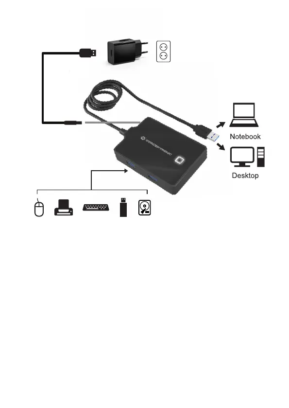 2. Connect the USB-A connector of the USB hub to a free USB 3.0 port on your
