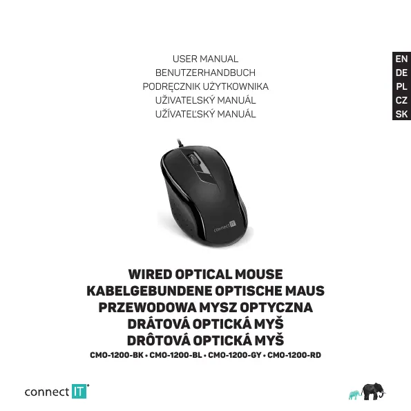 Olvassa el alább 📖 a magyar nyelvű használati útmutatót Connect IT CMO-1200 (24 oldal) a egér kategóriában. Ezt az útmutatót 19 ember találta hasznosnak és 10 felhasználó értékelte átlagosan 4.2 csillagra